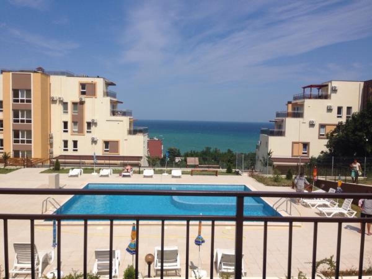 The apartment is located on the first floor and has the following distribution: entrance hall, spacious living room with separate kitchen area (48 sq.m.), 2 bedrooms (14 sq.m. each), closet (2.4 sq.m. ), Bathroom with toilet (7 sq.m.). The total living area of the apartment is 111 sq.m. There is a bonus - veranda type \"English yard\" with a sea view and an area of ??20 sq.m. And 1 parking space in the courtyard of the complex. The apartment is for sale finished \"turnkey\", incl. MDF glossy kitchen cabinets, air conditioning «winter / summer», German laminated parquet in the living room and bedrooms, Italian terracotta with wood effect in the kitchen, MDF doors, fully equipped bathroom with toilet (Spanish faience and terracotta, two sinks with mirrors, toilet seat, shower cabin, boiler), lighting fixtures. The complex has Akt16 (permission to usage) since 2016. Distance to the sea - 400 m. The complex has a swimming pool with a children\'s area, a relaxation area with parasols and sun loungers, a children\'s playground and two parking zones, one of which is on a fenced area. The service fee for the apartment + parking space is 250 € per year. Annual property tax and garbage fee – 75 EUR