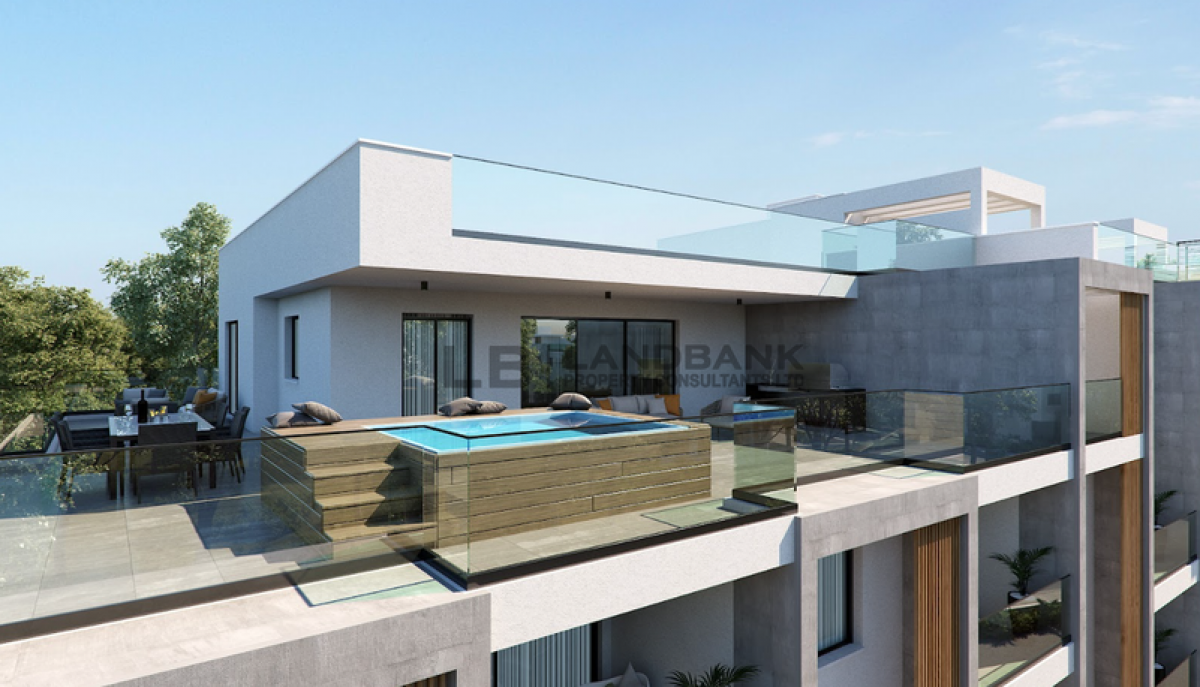 The property is a stunning 3-bedroom penthouse with roof garden and swimming pool located on the 3rd floor of a 3-storey residential building in Oroklini, Larnaca.It consists of an open plan kitchen with living/dining room, 3 bedrooms, 3 bathrooms, covered parking space and storage room.The apartment also enjoys a private swimming pool and roof garden.