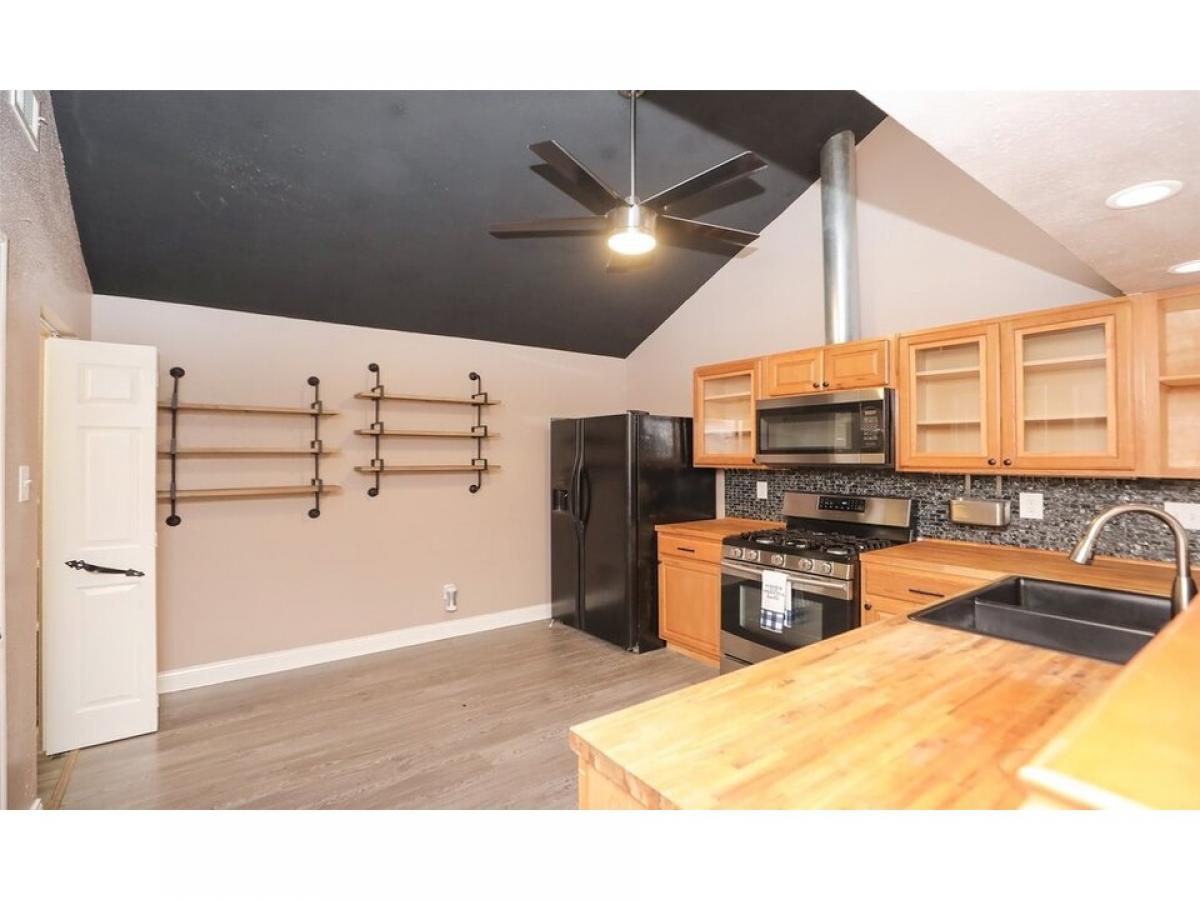 Beautiful remodeled one story four bedroom home. Mature trees, established neighborhood down the street from the neighborhood park. Large open kitchen, extra large walk in pantry, lovely lighting, true butcherblock countertops, all appliances and mounted tv#039;s included. Carpeted bedrooms, laminate in other rooms. Finished garage for a game room with a/c vent. Decking out den door for entertaining.