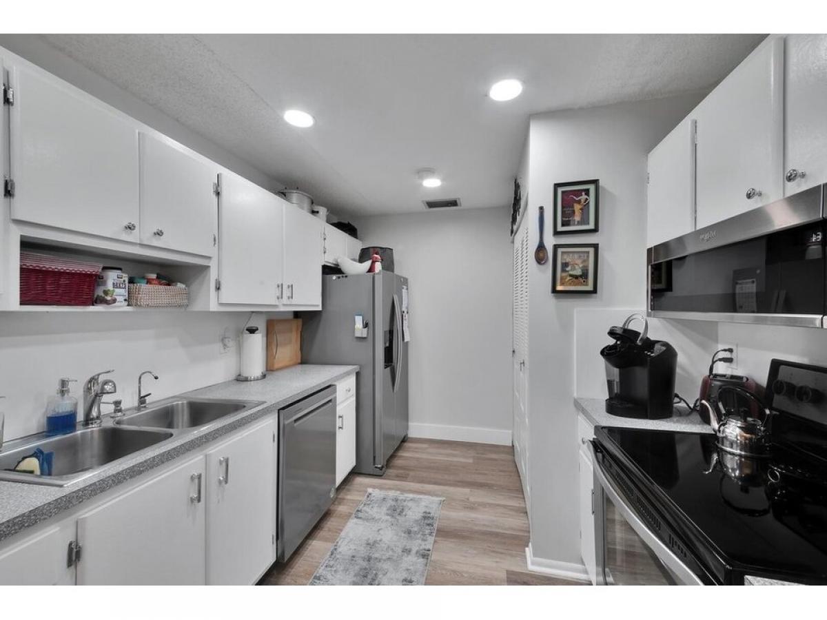 Welcome to your dream home in Delray Villas! This stunning 2-bedroom, 2-bathroom corner unit villa offers an open floorplan with a bonus room, perfect for an office or additional living space. The home features elegant marble tile and luxury vinyl plank flooring, complemented by recessed lighting throughout. The recently updated bathrooms and the brand new refrigerator, dishwasher, and microwave add a modern touch. Enjoy peace of mind with a newer hot water heater. The primary suite boasts a spacious walk-in closet and an en-suite bath. Relax and unwind in the screen-enclosed patio or on the charming front porch. This villa combines luxury and comfort, making it the perfect place to call home.