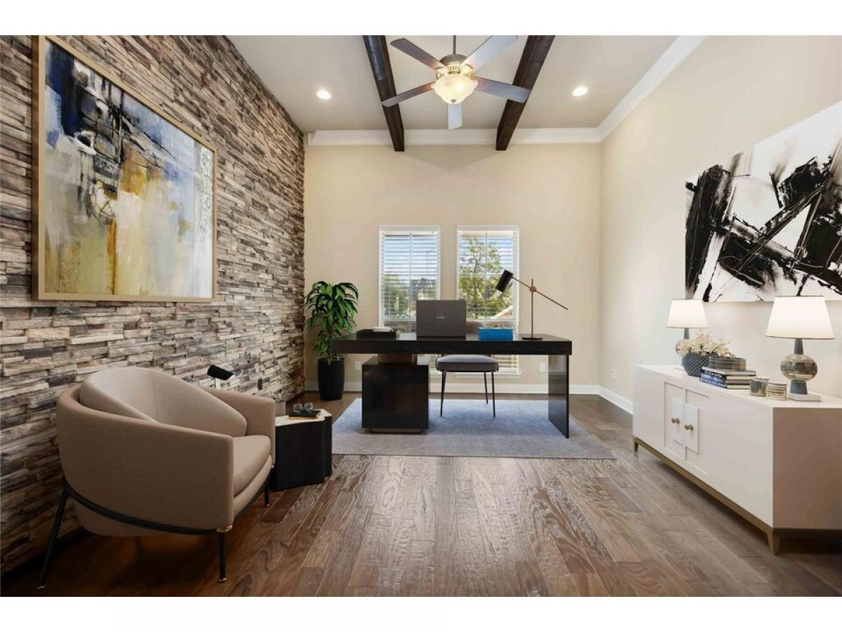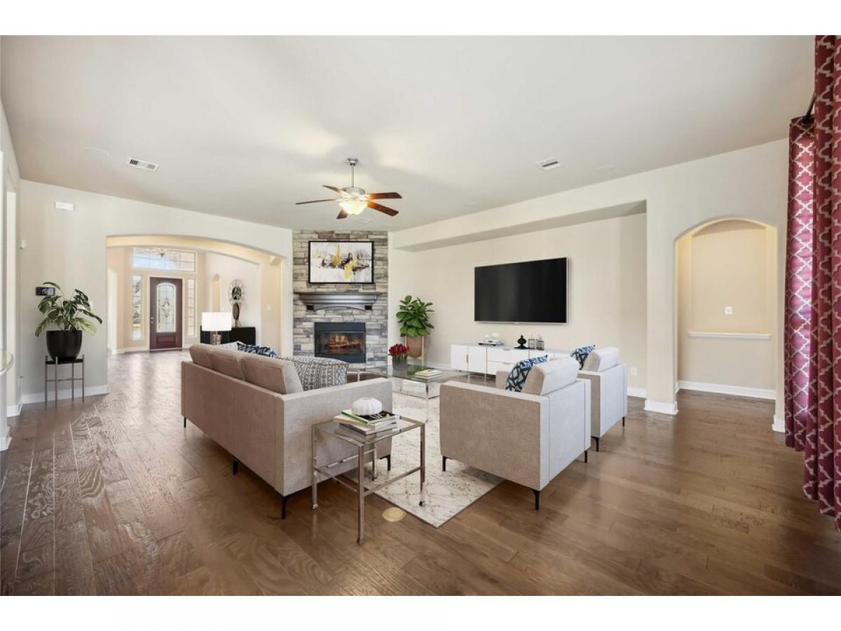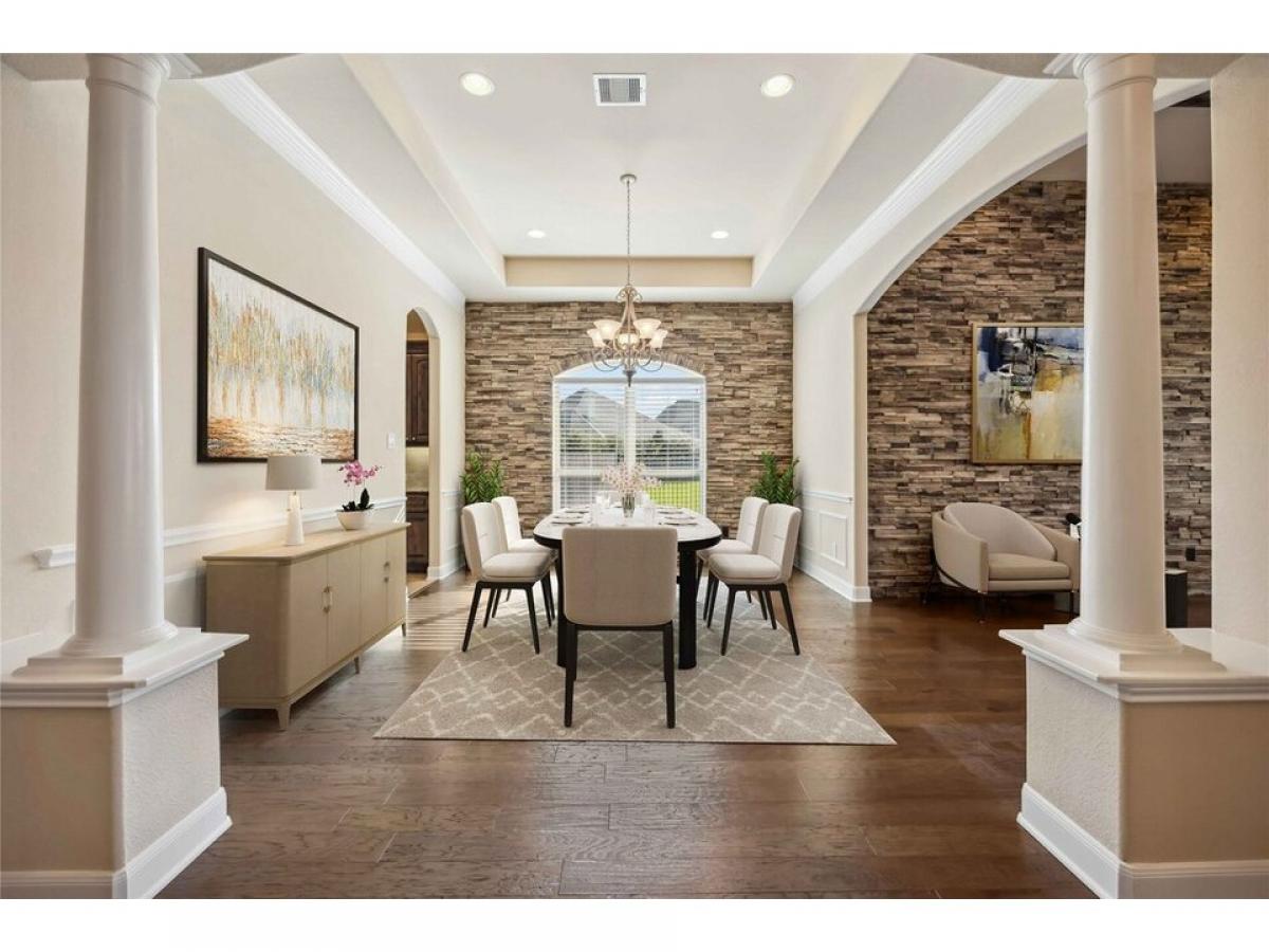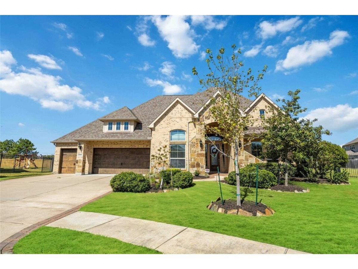 Welcome to this stunning home nestled on an oversized lot in Shadow Creek a private gated community. This home offers spacious living areas with an open floor plan connecting the living room, dining area, and kitchen. The gourmet kitchen boasts high-end appliances, ample cabinetry, and a large double island. The study was converted and used as a wine room. The primary suite features a spa-like en-suite bathroom. Each bedroom has generous closet space and bathrooms with their own linen closet. Outside, a landscaped yard and covered patio provide a peaceful space for entertaining with plenty of room for a pool (see renderings in attachments). Located near schools, plenty shopping, and dining. Close to the Exxon Campus! Bike to work, enjoy all of the walking and biking trails in the surrounding area. Sound wall provides privacy and noise control. Experience Spring living at this exceptional property that has endless possibilities! Make it your own
