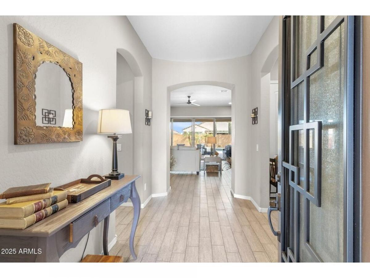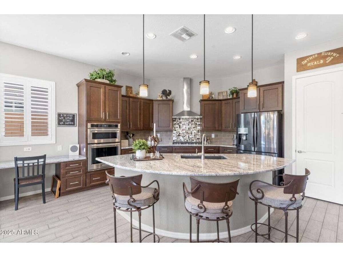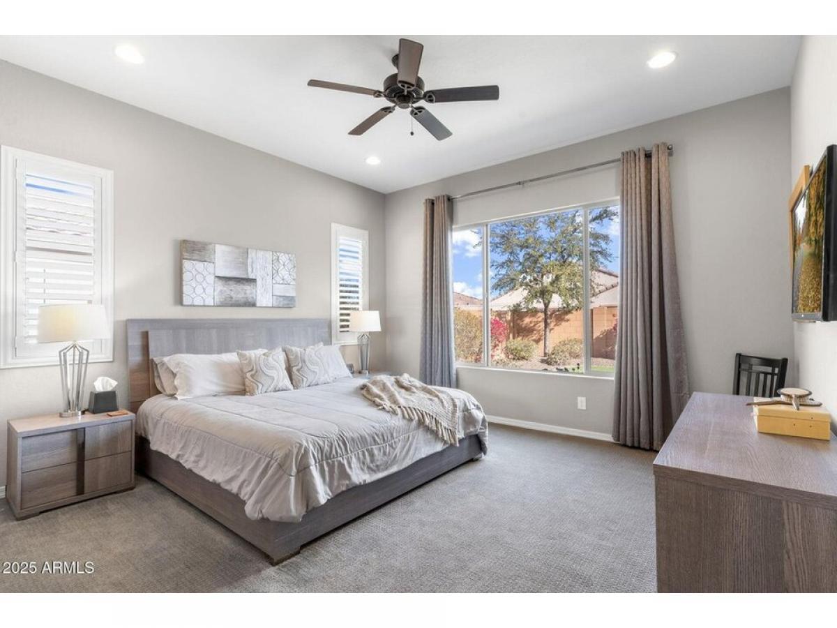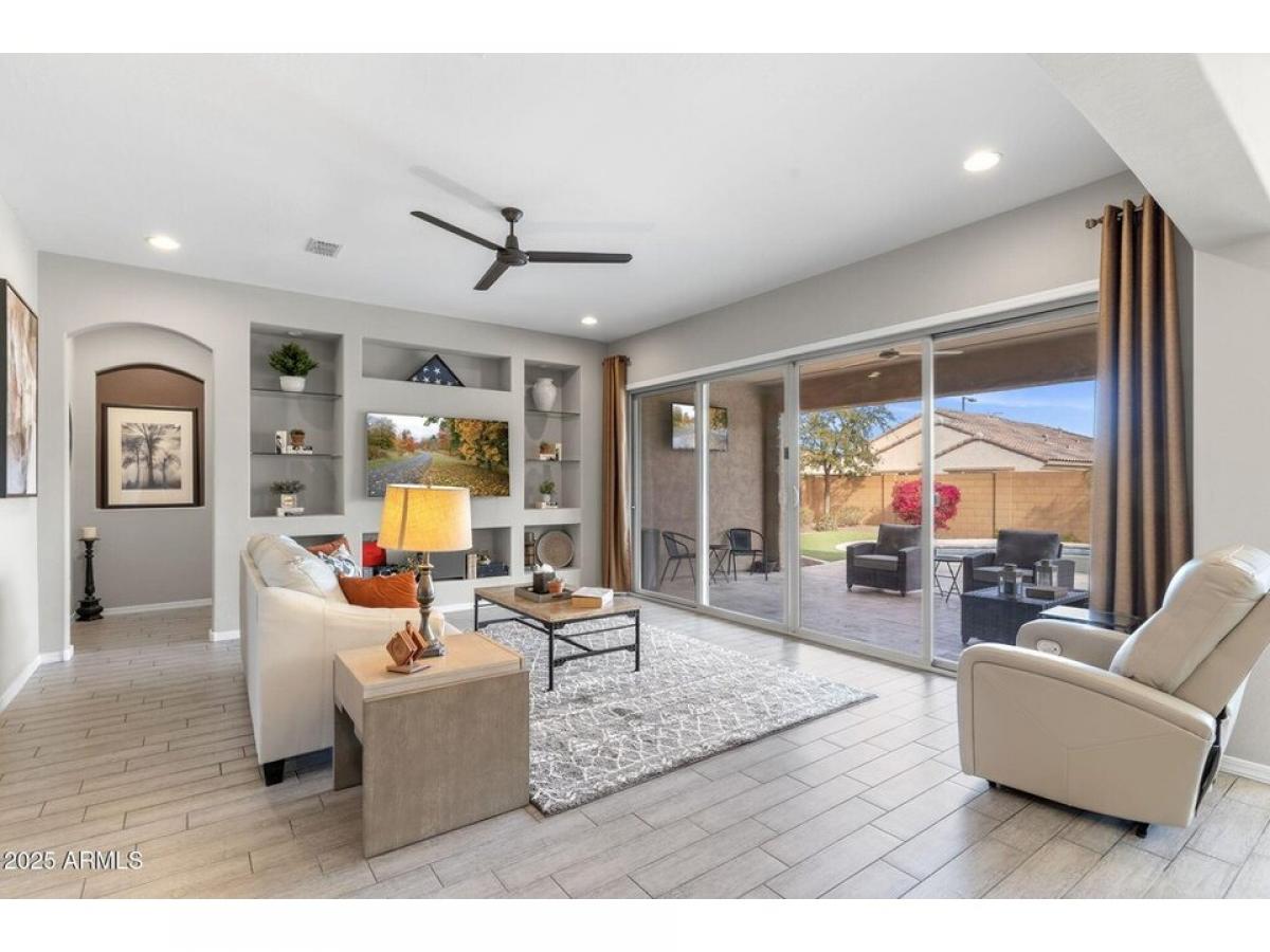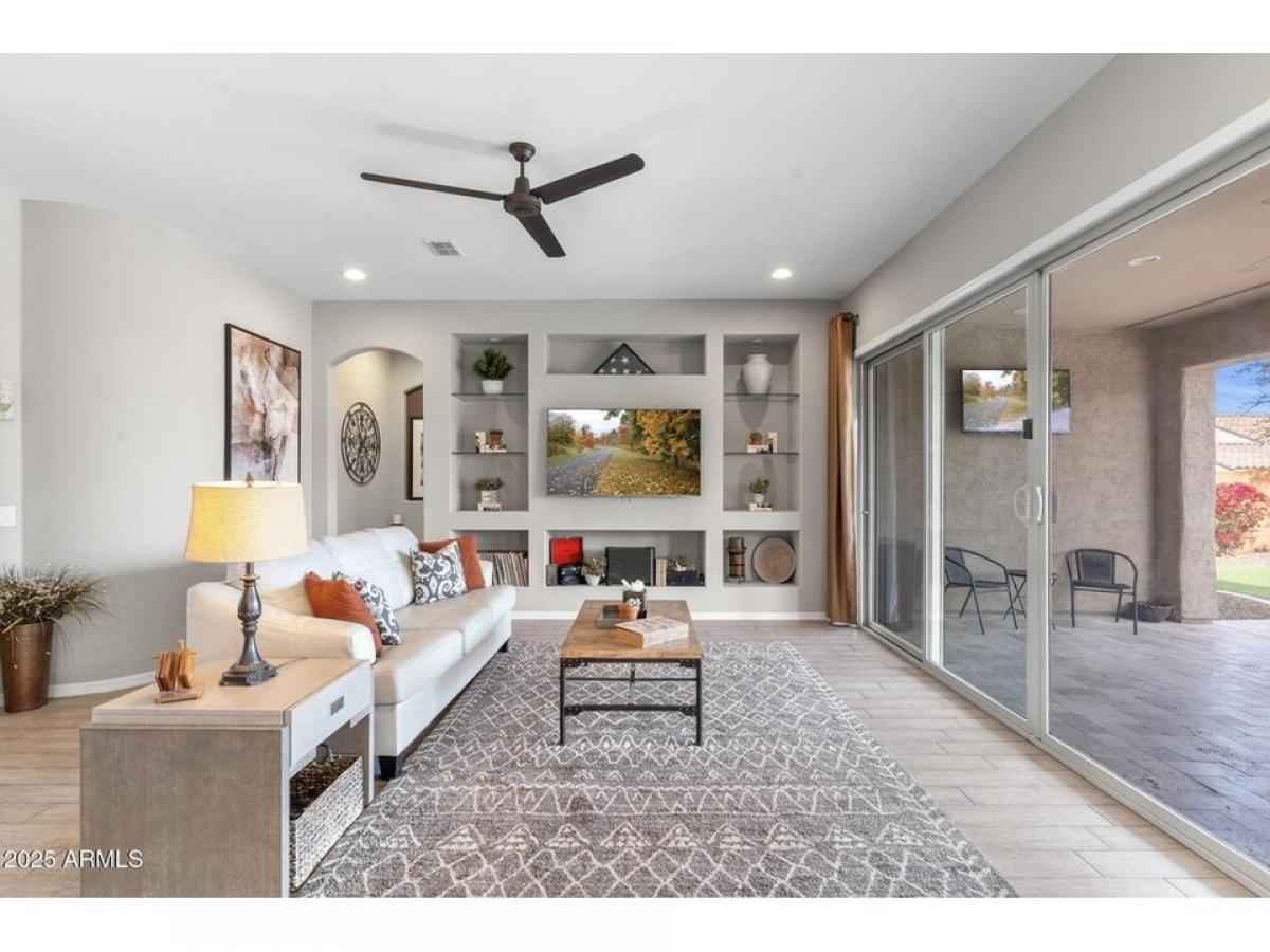 A must-see 2,023 square foot charming home featuring 2 bedrooms, 2 baths and a den. This single-story home is located on a quiet cul-de-sac lot in the highly coveted community of Sun City Festival. Upon arrival the living room welcomes you which is adjacent to the kitchen, dining areas and the private den. The oversized kitchen features stainless steel appliances including a gas range, a breakfast bar, granite countertops, center island, walk-in pantry and was designed for a culinary enthusiast. The immaculate home offers a split floor plan, with the primary bedroom located on the North side of the home. The lavish primary bathroom boasts a large shower, double vanities and an expansive walk-in closet. The resort-style backyard is complete with a Pebble-tech pool and features mature desert landscaping. The solar panel have been paid off.