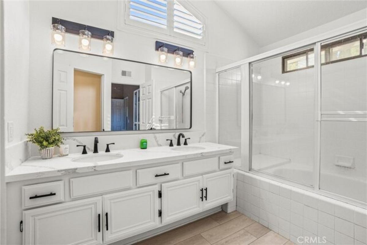 Welcome to this beautifully upgraded home, an oasis of modern luxury and comfort located in a prime San Dimas neighborhood. This meticulously renovated property features new vinyl flooring throughout, creating a seamless and stylish look. The remodeled kitchen is a chef's dream, boasting Calacatta quartz countertops, tile backsplash, new stainless steel appliances, recessed lighting, white cabinetry, and a charming farm sink. Plantation shutters throughout the home offer both privacy and elegance. The living area is highlighted by a remodeled stone fireplace, providing a cozy focal point for gatherings. Enjoy the benefits of sustainable living with installed solar panels and a new AC system ensuring year-round comfort. The water filtration system adds convenience and health benefits to your daily life. Freshly painted inside and out, this home feels brand new. The remodeled bathrooms offer a spa-like experience with modern fixtures and finishes. Step outside to find a perfect space for relaxation or entertainment. With plenty of parking, this home includes 2 garage spaces and 3 additional spaces in the driveway. Located in a desirable community with low HOA dues, this home includes access to a clubhouse with a pool and spa, a beach sand volleyball court, RV storage, horse stables, and a riding ring. The home is situated within the highly acclaimed Bonita School District, ensuring excellent education opportunities. Enjoy easy access to freeways, and be just minutes away from Bonelli Park, Raging Waters, schools, shopping, and much more! Don't miss the opportunity to own this move-in-ready gem, where every detail has been thoughtfully upgraded for your comfort and enjoyment. Schedule your visit today and experience the exceptional lifestyle this home offers!For more details: