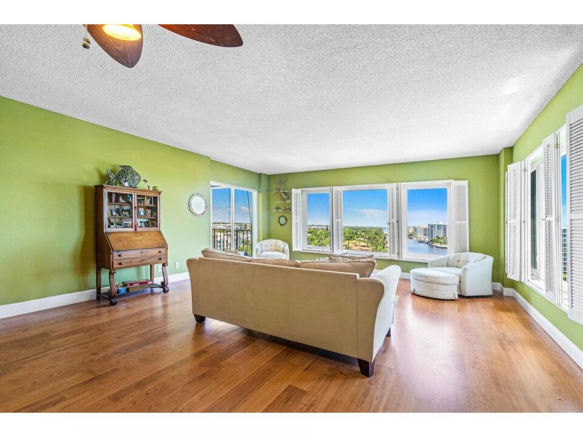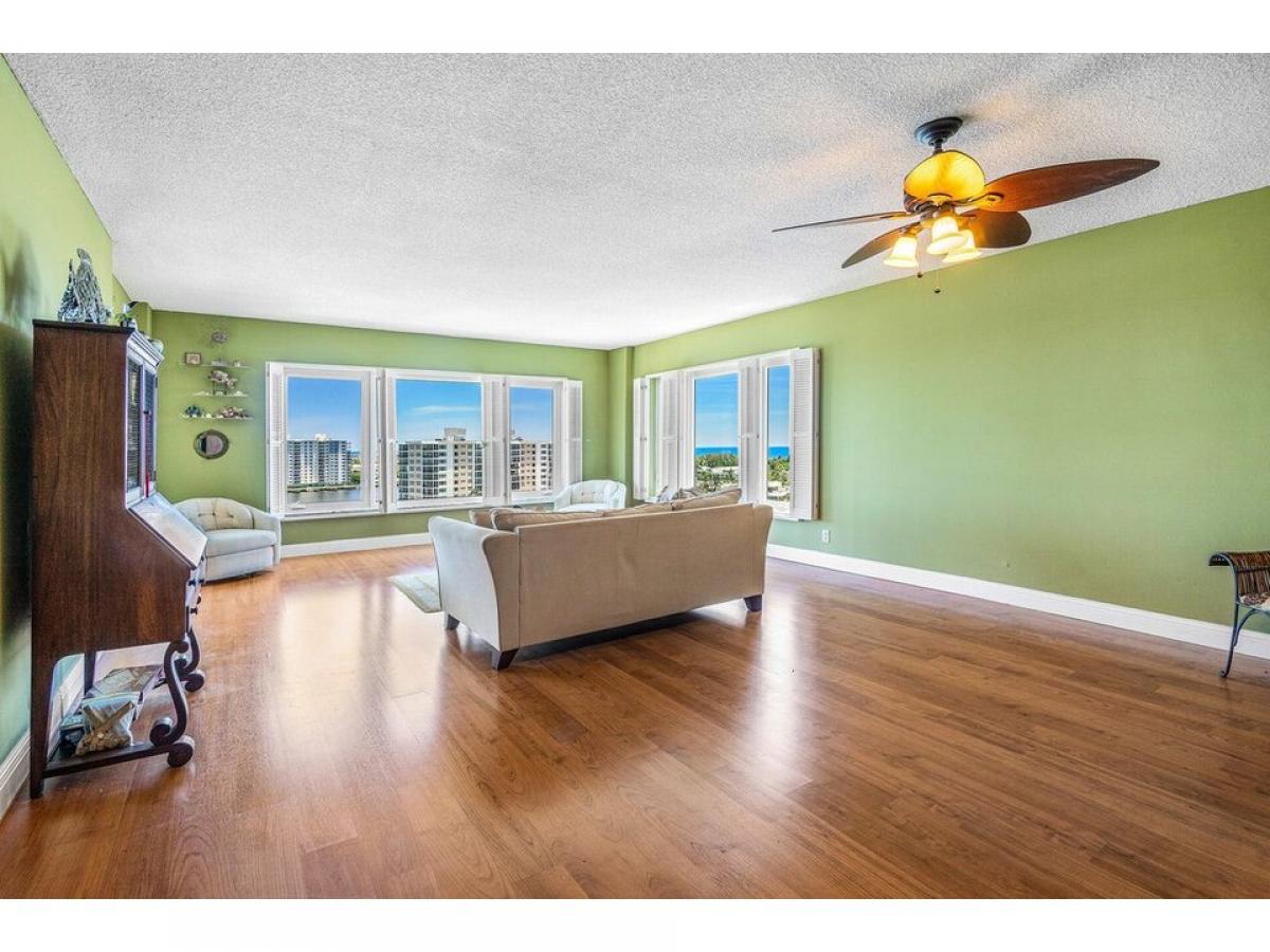 11th floor, 2/2 with waterfront views of the ICW and the Atlantic Ocean. This unit is a solution for a buyer that is looking for incredible views with an opportunity to make the unit their own. A carport space is assigned to the unit. Short distance (.64 miles) to Atlantic Ave. Short distance (1.2 miles) to the beach. 24/7 security. Impact windows. Application fee is $150 and deposit is a $500 refundable move-in deposit. Financing requires 20% down. No rentals allowed. No Pets. No Washer and Dryer in unit. Common laundry room on each floor. Additional 85 sq. ft. of the enclosed porch area is included in the living sq. ft. All measurements are approximate and subject to error, omission, and changes without notice.