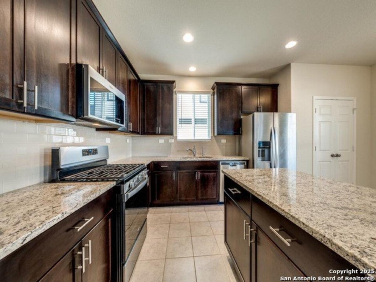 Great Curb appeal describes this gently lived in hill country home with its light stone exterior and accent shutters. 4 bedrooms/3 baths floor plan is ideal w/a secondary bedroom and full bath downstairs, Upstairs is a generous 2nd living area perfect for entertaining. Island kitchen opens to breakfast amp; family room; stainless appl/microwave/tile backsplash amp; granite countertops.Tile flooring on main level living areas. Upstairs master bedroom features a tray ceiling; Mstr bath has double vanity amp; lg. walk-in shower. Sizeable backyard features covered patio, sprinkler system amp; privacy fence. GREAT FAMILY Home!!!