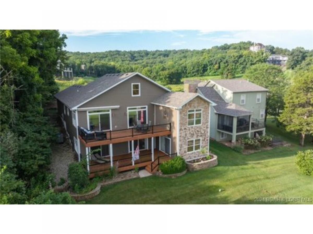 Live your dream at Old Kinderhook with views of both the 13th hole and the beautiful Lake of the Ozarks. This 4 bedroom, 4 bath house is move-in-ready. It has been meticulously maintained and updated to show like new. The main level features the primary ensuite with a walk-in shower, walk-in tub, and a private fireplace for a complete spa feel, a guest bedroom, and a full bath. The open-concept living area has a stacked stone fireplace, a kitchen with a large quartz island, a dining area, and easy access to the pantry and laundry. The entire upper level is another large ensuite. The lower level encompasses a 2nd living area/game room, 4th bedroom with an attached bathroom, and unfinished space for a 5th bedroom that is currently being used as a workshop. The home is being sold furnished and includes the $5000 golf membership fee to the prestigious Old Kinderhook. The quarterly HOA fee includes water, sewer, trash, internet, and yard maintenance for a carefree lifestyle.