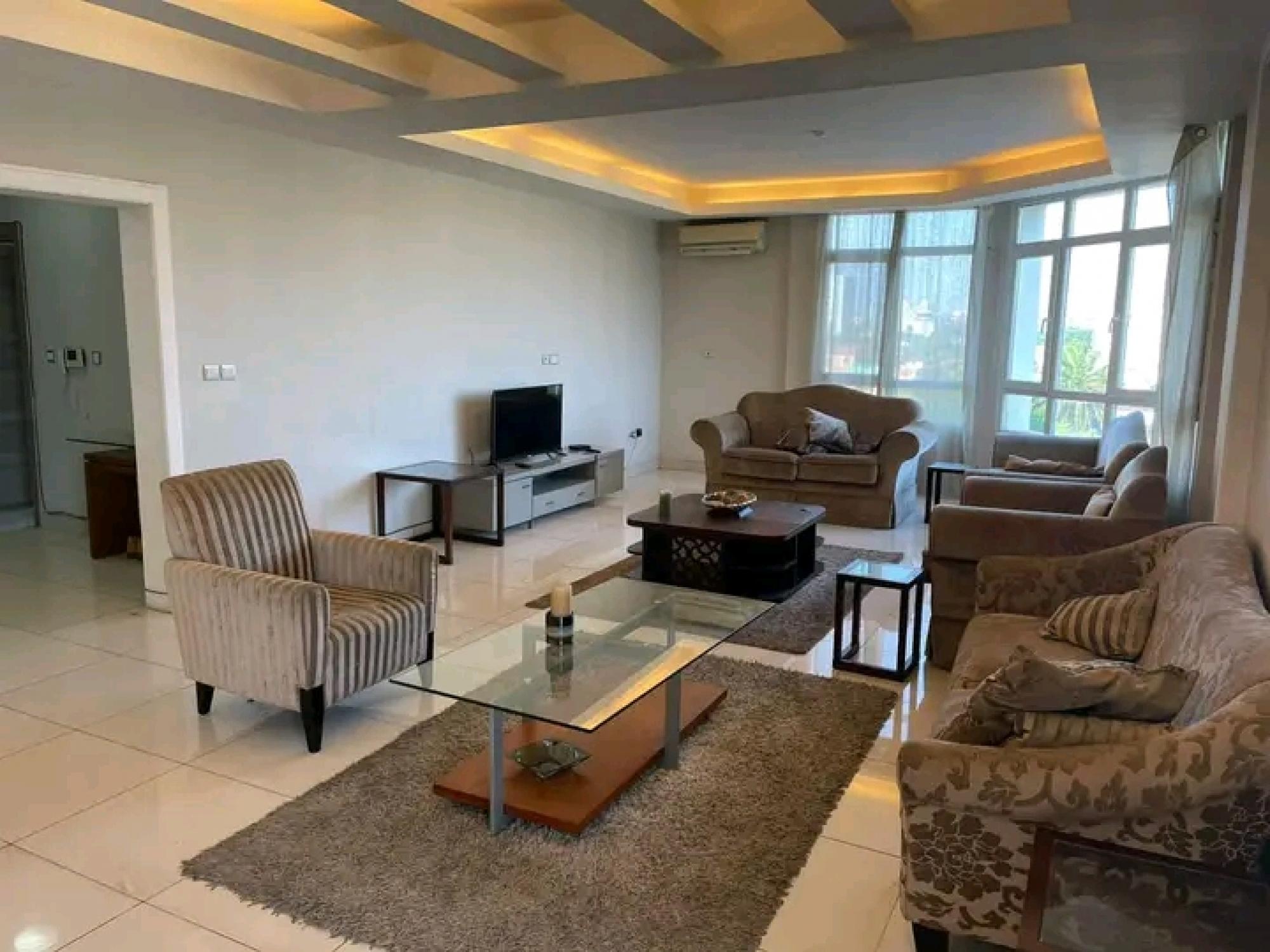 Executive fully furnished ensuite 3 bedroom apartment located at the centre of Dzorwulu come with fitting and fixture, install AC, furnished kitchen, wireless internet, standby power and other facilitiesPrice$2500/ month
