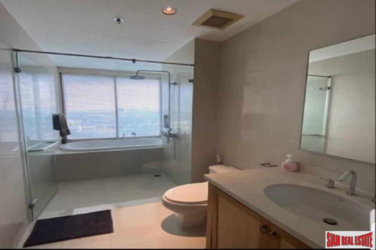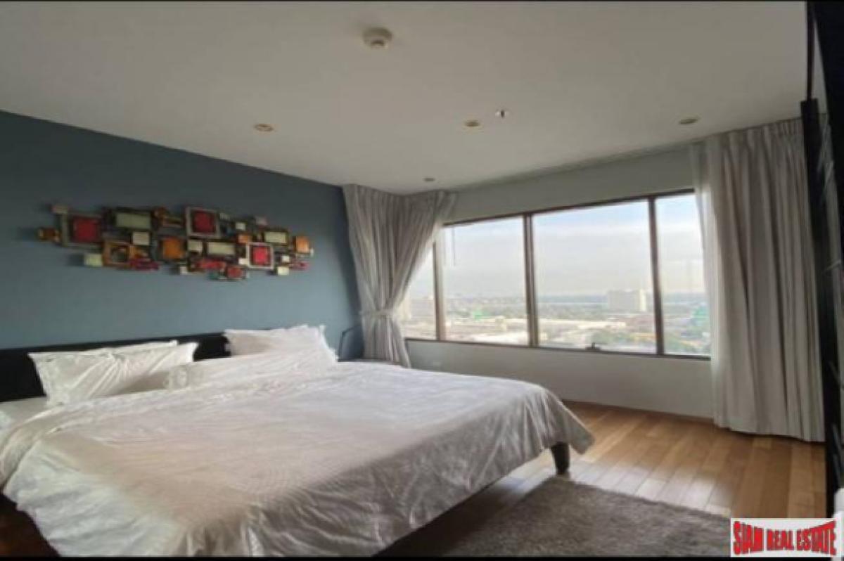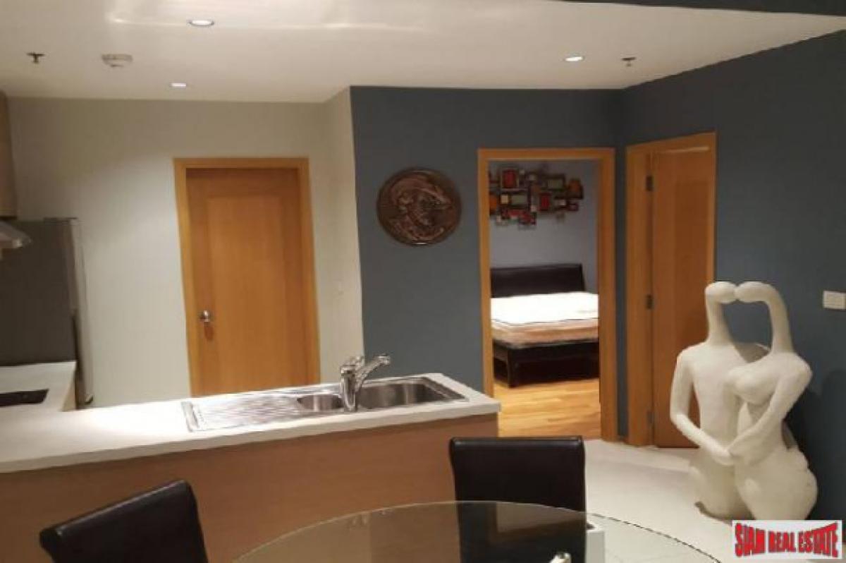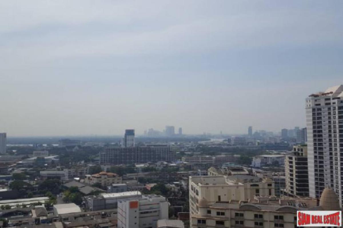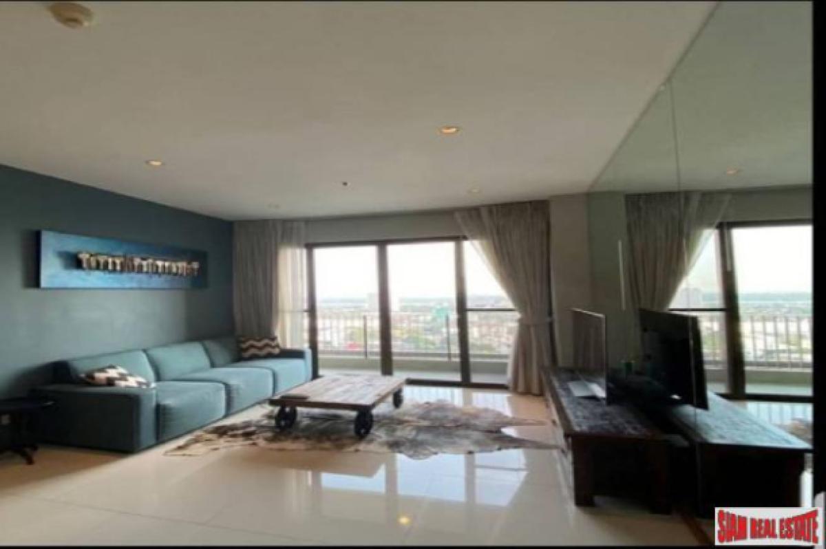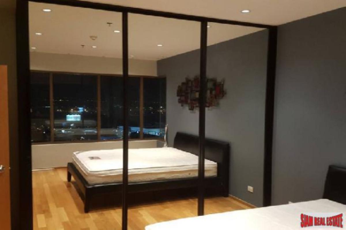 This is a very modern 65 sqm one bedroom condo for sale on the 20th floor with excellent city views. The apartment has an open living plan with a big living room, dining area and western kitchen. The kitchen is L-shaped which offers a big counter space and many cabinets. It includes a stovetop, microwave and refrigerator. The living room has floor to ceiling mirrors on one side that give the apartment a very spacious feeling. There is also a big window that leads out to the balcony to enjoy the views.The bedroom has wood floors and a wrap around window that also showcases the views. There is a big built in wardrobe and an ensuite bathroom. The contemporary bathroom has a glass walk-in shower with bathtub. In addition there is a small utility room that has a convenient washing machine.