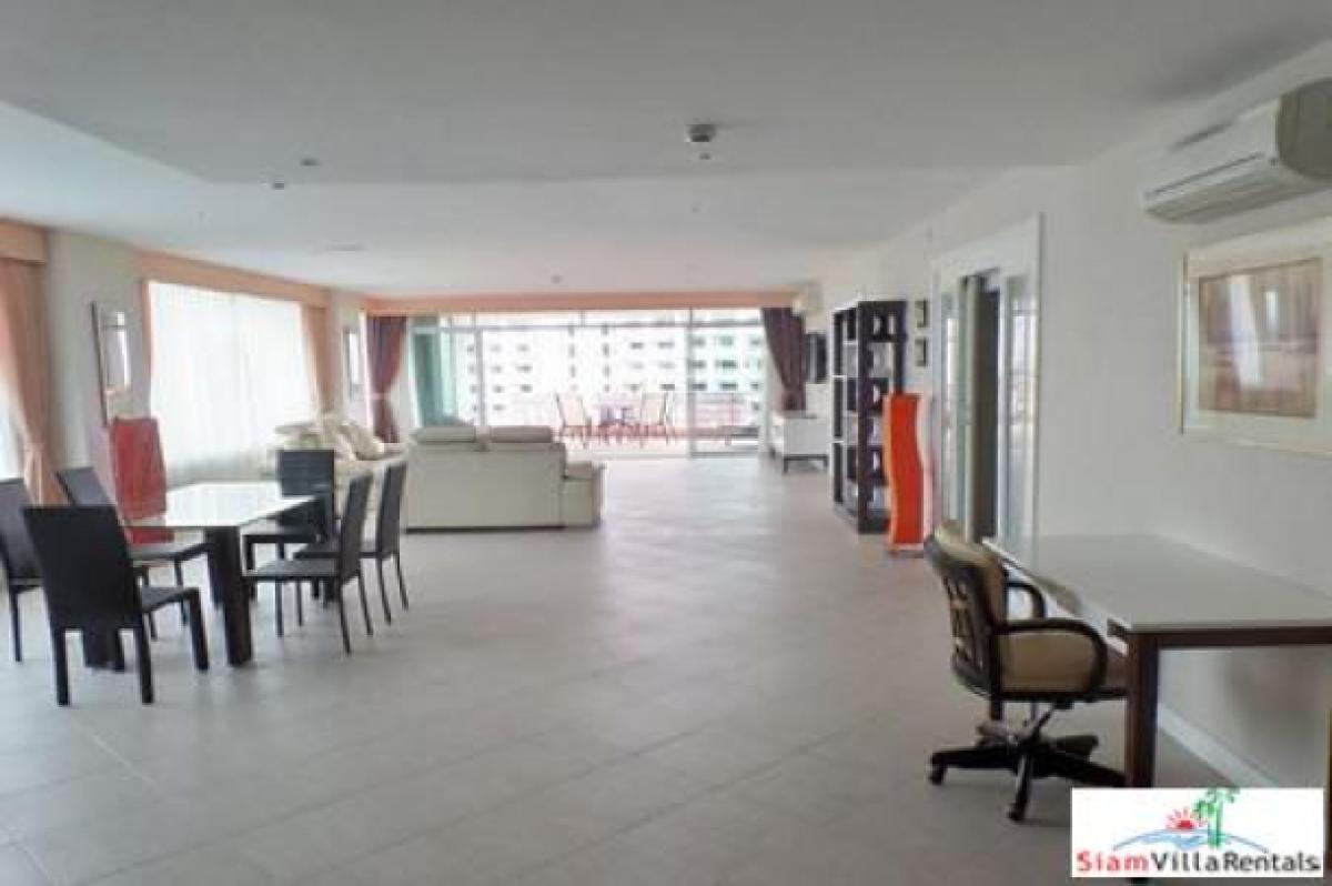 This Large 2 Bedrooms condo is in a much sought after area Pratumnak. Amazing 230 sq meter condo . Fully refurnished, Was originally 3 bedroom 3 bathroom , now 2 bedroom 3 bathroom (but easily converted back) Huge open plan lounge /diner with 3 enormous picture windows facing green Temple land. Enormous balcony with sea view. Large separate European style kitchen. Huge cloakroom with shower toilet and washing machine . Master bedroom with balcony (sea view) full bathroom and shower, fitted wardrobes, desk and dressing table. Second master bedroom with large walk in closet , fitted dressing table and desk, shower room . Vision and secondary curtains . Free Undergound Parking , Gymnasium, pool, Jacuzzi. 24 security. Safes fitted in bedrooms . A great opportunity to purchase a truly wonderful condo for family and entertaining. Just minutes from Pattaya and Jomtien beaches and on main baht bus route .- * Living Room