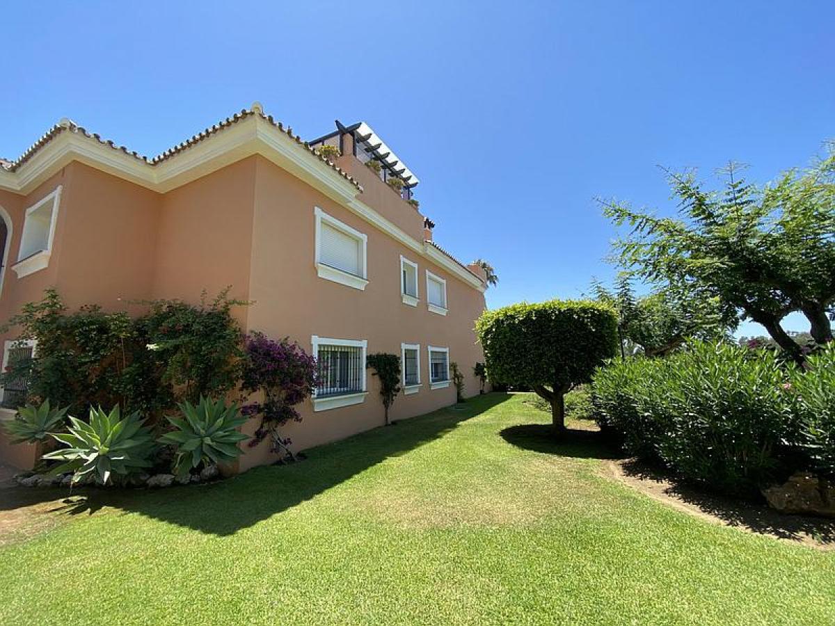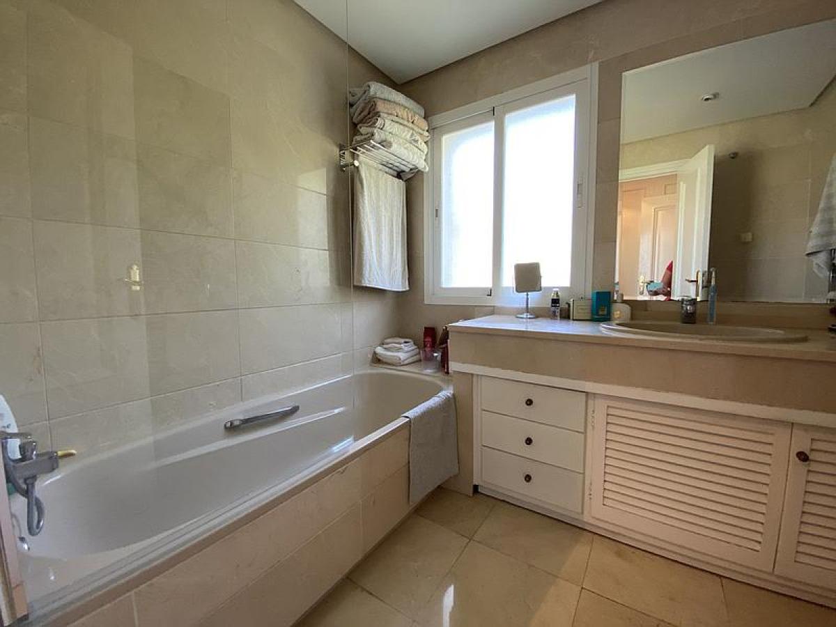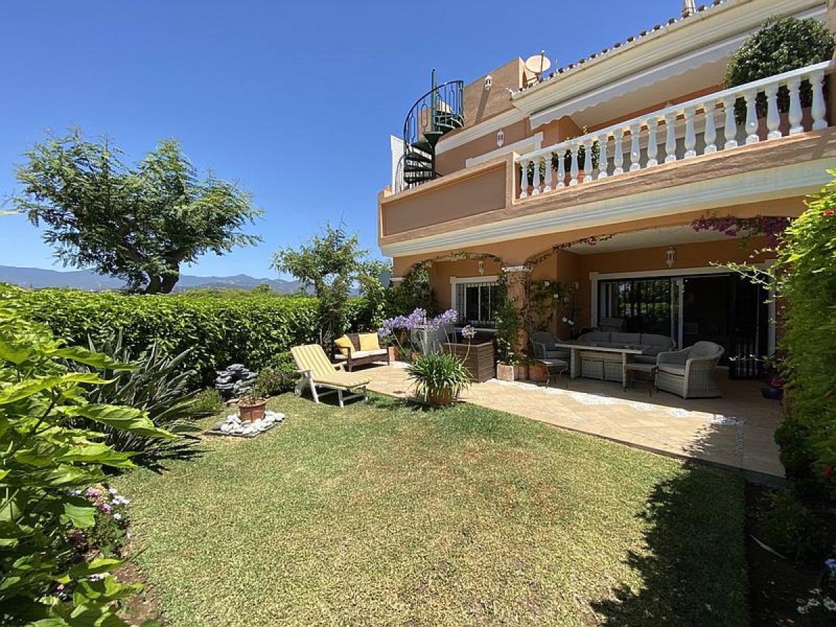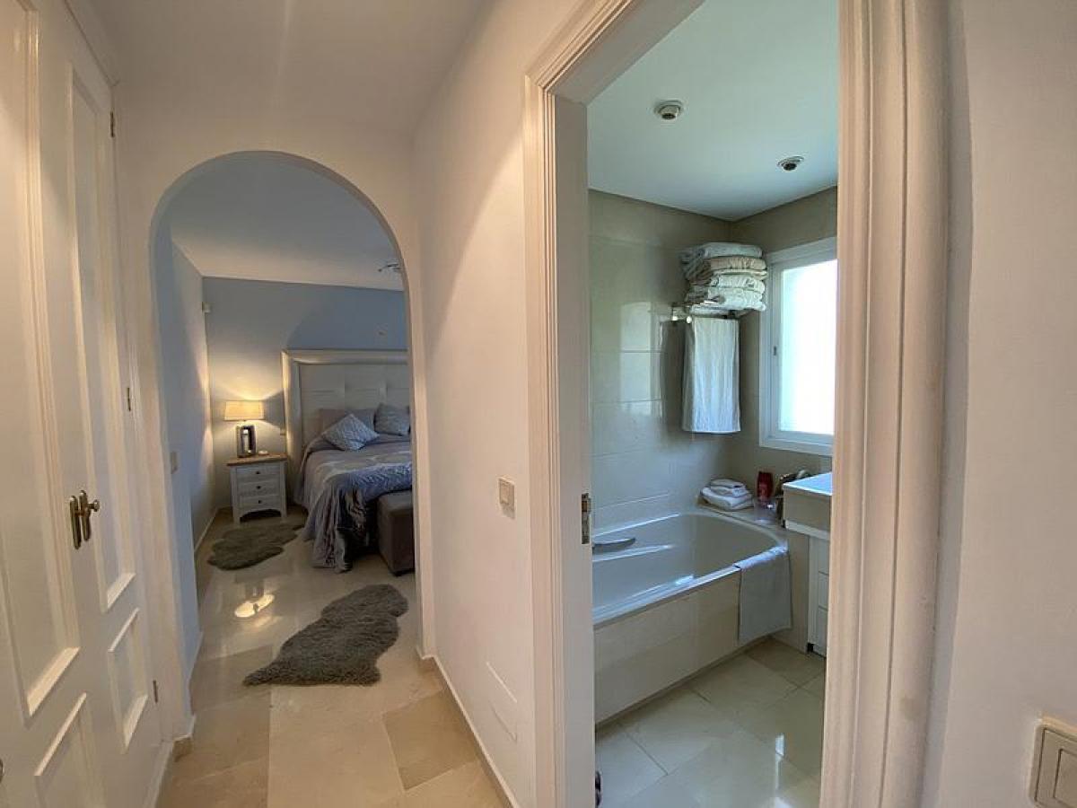 This corner apartment is one of the largest in the community and can easily be converted to a 3 bedroom apartment if required. it consists of hallway, L-shaped living room with fireplace and exit to the covered terrace and the garden. Large and fully equipped kitchen with adjacent utility room. Master bedroom with en-suite bathroom, guest bedroom and seprate bathroom.