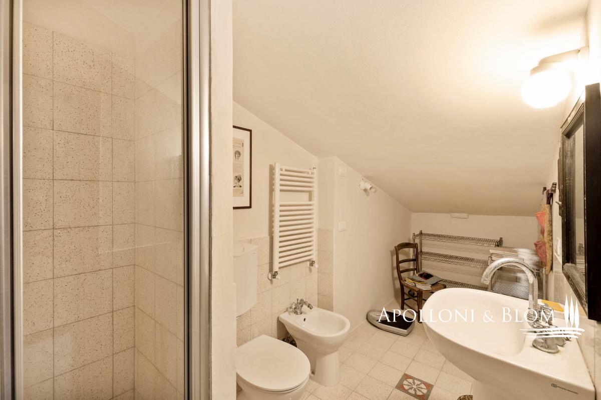 A panoramic historic apartment, ready to live, with two bedrooms and views of the rolling hills, for sale in the heart of Chianciano Terme. Prime location in the historic center of Chianciano Terme, this distinguished residence, dating back to the late 19th century, offers a unique opportunity to reside in a home imbued with historical significance and character, within one of Tuscany's most prestigious spa towns. Spread over two levels, the property boasts a well-distributed layout, ensuring a bright and welcoming atmosphere. The entrance, located on the ground floor, opens onto a staircase leading to the first floor, where the entire apartment unfolds. The upper level features a traditional kitchen, enhanced by a skylight and a pellet stove, a lounge and a sitting room, both adorned with windows that frame stunning panoramic views of the picturesque countryside and the charming town. The apartment includes two double bedroom, one with en-suite bathroom, and a second bathroom. Meticulously maintained over the years, the property is in excellent condition, seamlessly combining the authenticity of its historic architecture with modern amenities. Just a short walk from the renowned thermal spa and all amenities, while still enjoying the tranquility and beauty of the surrounding landscape. Ideal as a primary residence or as an investment for those seeking a charming home in one of Tuscany’s most captivating regions. Apolloni Blom Real Estate Agency Fee set at € 5000 + VAT flat rate PROPERTY Ref: CHT3232 Location: Chianciano Terme Province: Siena, Region: Tuscany Type: 140 sqm/1507 sq ft two-story apartment Year of construction: 1800 Year of restoration: partial in 2004 Conditions: good Layout: Ground Floor: entrance hall with staircase First Floor: kitchen with skylight and pellet stove, living room, sitting room, 1 double bedroom, 1 bathroom, 1 double bedroom with en-suite bathroom, Utilities: Fixed telephone network: available Internet: available Heating: methane + 1 pellet stove Water: mains city supply Electricity: available Water waste: mains city connection The property is owned by a private individual. The location, for privacy, is approximate. Please note all measurements cited are approximate Energy Efficiency Rating: G Distance from services: walking distance Distance from main airports: Florence 140km/87 miles, Rome 190km/118 miles, Pisa 190km/118 miles- bathroom