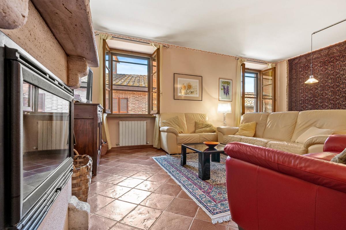 This is one-of-a-kind downtown historical four-bedroom apartment with a stunning panoramic roof terrace on sale in Città della Pieve, Perugia. One of the most enchanting medieval towns in Umbria, known for its annual traditional fairs as Il Palio dei Terzieri and the Infiorata, Città della Pieve enjoys a strategic location with the nearest train station at just 8 km, Chiusi-Chianciano Terme, and the A1 Rome-Florence highway at 12 km, perched on a hill, overlooking Valdichiana and Lake Trasimeno. In one of the characteristic narrow streets in the beating heart of the village, stands an 18th-century four-story building housing a total of eight self-contained apartments. The property consists of a unique 240 sqm/ 2583 sq ft three-story residence elegantly renovated in the 1990s with terracotta and wooden floors boasting a splendid panoramic roof terrace on the fourth floor. The foyer on the second floor opens into a living room featuring a fireplace and panoramic views over the town streets. An eat-in kitchen, a study, a courtesy bathroom, and a master bedroom with en suite complete the floor. Up on the third floor two more bedrooms, a family bathroom, and a characteristic very bright attic designed as a living area with a fireplace and a second kitchen. The fourth and last floor houses an attic area with a bathroom and access to the terrace, the top highlight of the entire property, with a very impressive view and ideal for relax and outdoor dining. On the ground floor, next to the main entrance, a handy 20 sqm/215 sq ft cellar. A ready-to-move-in property perfectly located in one of the most attractive historical towns of central Italy, ideal both as a private residence or to host tourists and travelers for their holidays. PROPERTY Ref: CDP2648 Location: Città della Pieve, Province: Perugia, Region: Umbria Type: 240 sqm/ 2583 sq ft three-story downtown apartment featuring a panoramic 20 sqm /215 sq ft roof terrace and a 20 sqm/ 215 sq ft ground floor cellar, within a historical building totaling 8 self-contained apartments and 3 street level shops Year of construction: 1700 Year of renovation: 1990s Condition: excellent Terrace/Balcony: 20 sqm /215 sq ft on the 4th and top floor Property in the name of a private individual The location, for privacy, is approximate All measurements shown are approximate Energy Efficiency Rating F Utilities: Fixed telephone network: available Internet: broadband Heating: natural gas - radiators + fireplaces Water: mains city supply Electricity: active Distance from services: downtown Distance from main airports: Perugia 52 km, Florence 145 km Layout: Ground Floor: common entrance hall and access to the private cellar Second Floor: foyer, living room with fireplace, eat-in kitchen, courtesy toilet, 1 study/bedroom, 1 ensuite bedroom Third Floor: living room with kitchenette and attic, 2 bedrooms, 1 family bathroom Fourth Floor: bathroom and access to the panoramic terrace- terrace