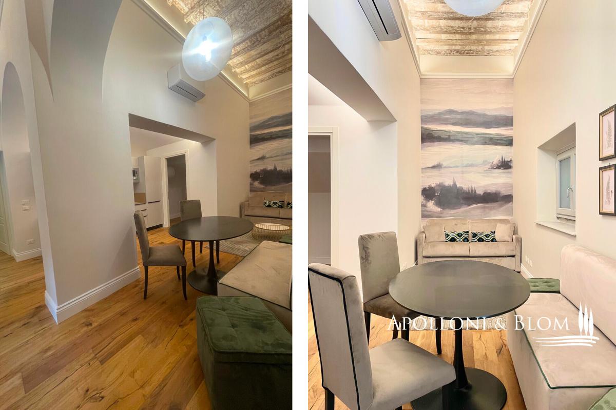 Charming one-bedroom apartment finely restored for sale fully furnished within a historic building facing the Boboli Gardens, Florence. Prime position on Via Romana—adjacent to La Specola’s Natural History Museum and just a short stroll from Ponte Vecchio, the Arno river and the Uffizi—offers a privileged perspective on the city’s landmarks, with the verdant expanse of the Boboli Gardens directly opposite. Occupying the ground floor of a 15th-century building, this 61-square-metre (656 sq ft) apartment has been recently restored with meticulous attention to detail and is for sale fully furnished and ready to live. It consists of access from the lobby and characteristic communal courtyard, entrance with solid wood security door, open-plan living area with high ceilings and parquet flooring. The kitchen is new, complete with appliances and a marble dining table. On the back a double bedroom with an elegantly marble-clad bathroom and access to a private courtyard with an intimate outdoor living space, a unique feature in the historic city center. New wooden window frames, soft neutral tones and bespoke furnishings enhance the sense of calm and sophistication throughout. A retreat in the heart of historic Florence, an ideal private pied-à-terre and an exceptional investment opportunity, offered fully furnished and ready to enjoy. The property is owned by a private company. The purchase of this property is subject to VAT (Value Added Tax). The applicable rate will be assessed according to its intended use, whether as a principal private residence or as a second home. PROPERTY Ref: FIR3442 Location: Florence, Region: Tuscany Type: 61 sq m/656 sq ft ground floor 1-bedroom apartment with private court, within an elegant center-located historic palazzo Year of construction: 1400 Conditions: excellent Utilities: Fixed telephone network: available Internet: available Heating: natural gas Water: mains city supply Electricity: active; air conditioning Parquet floors. Marble wall tiles Distance from services: walking distance Distance from main airports: Florence 10 km Layout: Ground Floor: living room with kitchen, 1 bedroom, 1 bathroom and access to a private court- bathroom