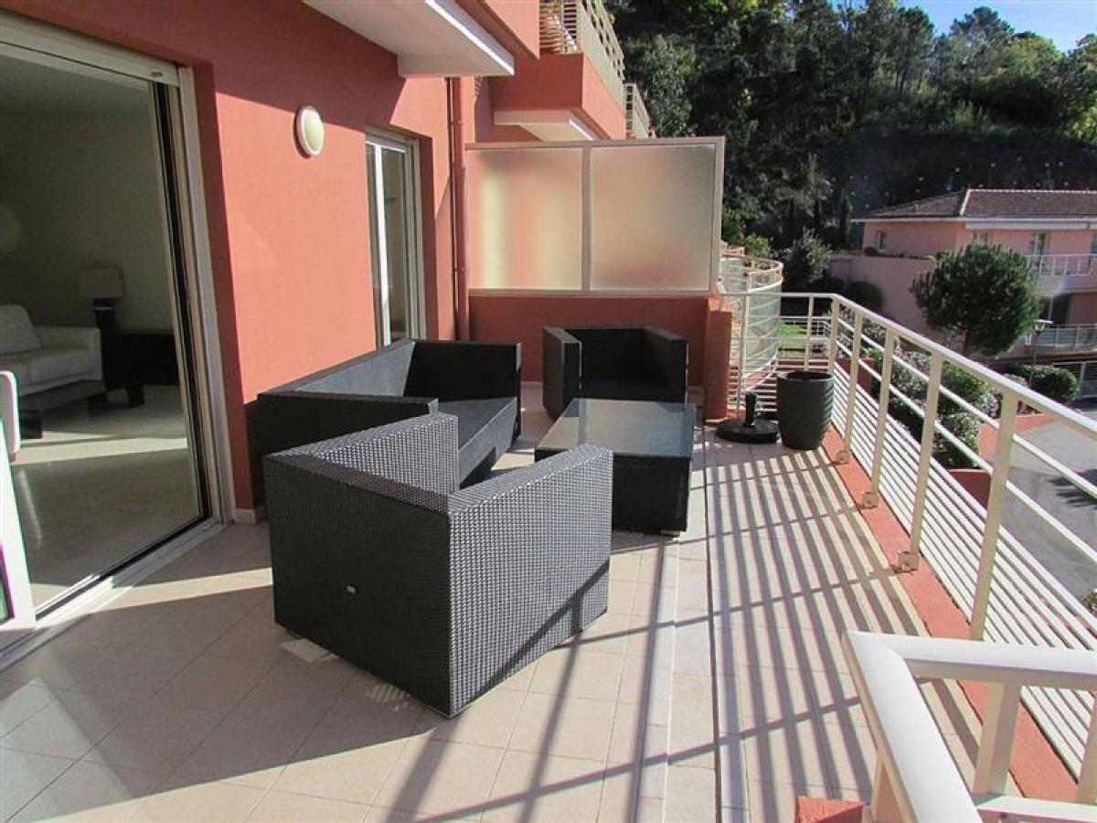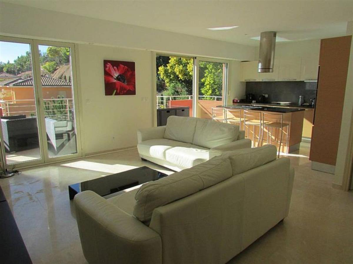 Situated in a well-kept complex and benefiting from the use of a private pool for this small block. There are two secure underground parking places and access to the property is via a coded entry door. The apartment is situated on the first and second floor and consists of an entrance hallway, leading into a large open plan living room of 34m2 which includes the kitchen. This is fitted with high quality fixtures and built in Siemens appliances and includes a modern central cooking worktop with extractor. South facing with wide glazed sliding doors leading out onto the large terrace of 22m2. This is large enough for a family-sized dining table when you want to eat outside and there is also room for sun loungers, with a view of the sea. On the other side of the kitchen is the first bedroom which has fitted wardrobes and an en-suite, with a shower, wash basin and WC. Back in the main entrance hallway there is a separate WC. Next to this a set of stairs takes you down to the next level. Here there are 2 more bedrooms. The one at the rear is a twin with fitted wardrobes and an en-suite, with a walk in shower, wash basin and WC. The next bedroom is the master bedroom and the largest of the three. it has fitted wardrobes and an en-suite. Here there is a bath, with shower over, wash basin and WC. The bedroom has its own private access to a south facing terrace of 11m2 with sea views. There is also a small garden area. There is reversible climate control and electric shutters all around, which have a one button open feature at the entrance door. The property has access to a pool, which is only shared by the 12 apartments in this particular block. if you like walks, hiking, mountain biking. Behind the complex there are several trails and paths that traverse the natural habitat of the Esterel hills. Miramar is some 16kms to the West of Cannes along the Esterel coast and has a lovely marina and crescent shaped bay with sandy beach. Both the beach and marina have a good selection of bars and restaurants and this is just a short stroll from the apartment. You can reach Miramar via public transport with trains stopping in nearby Le Trayas and Theoule sur Mer from Nice and Cannes. in summary a superb property in an excellent location, ideal as a family holiday.