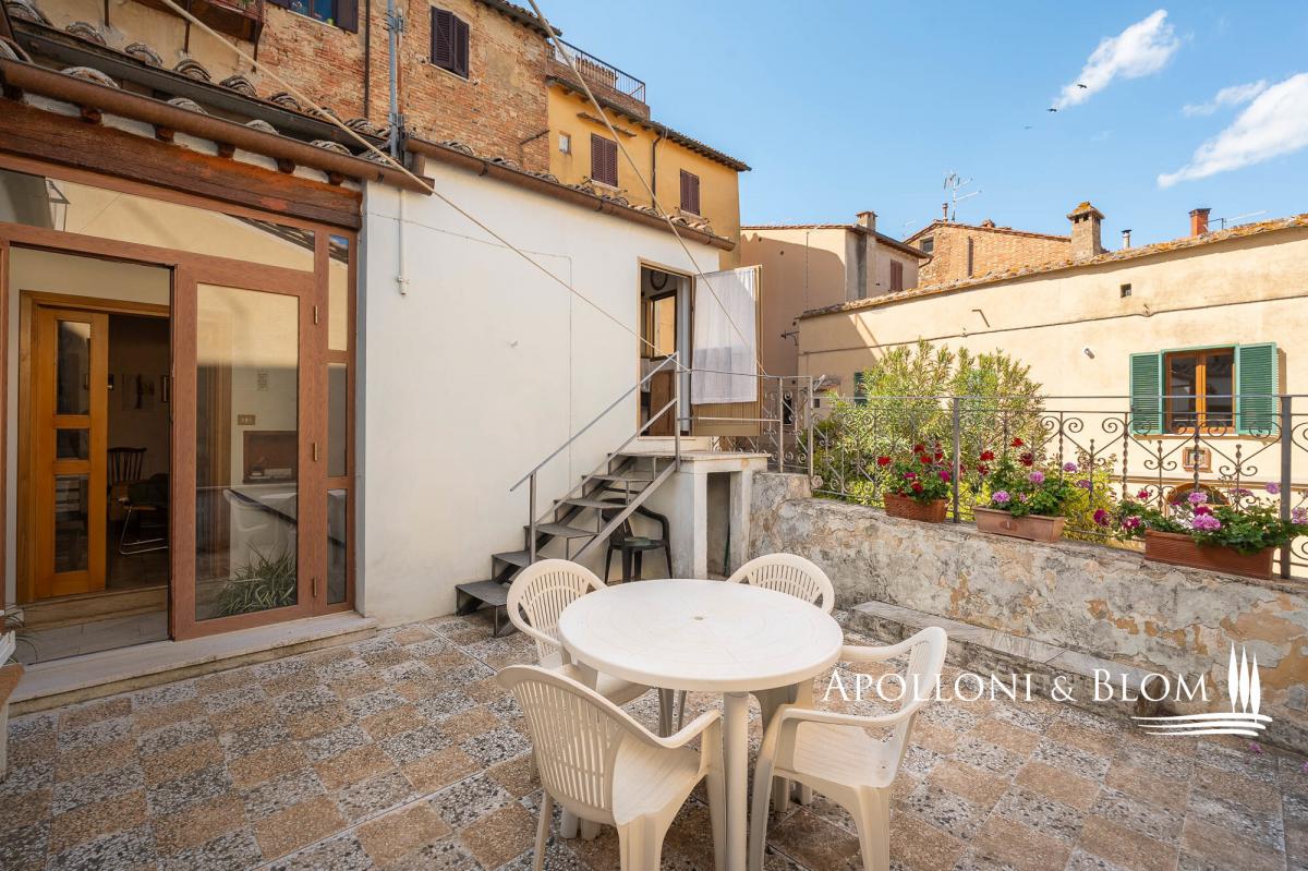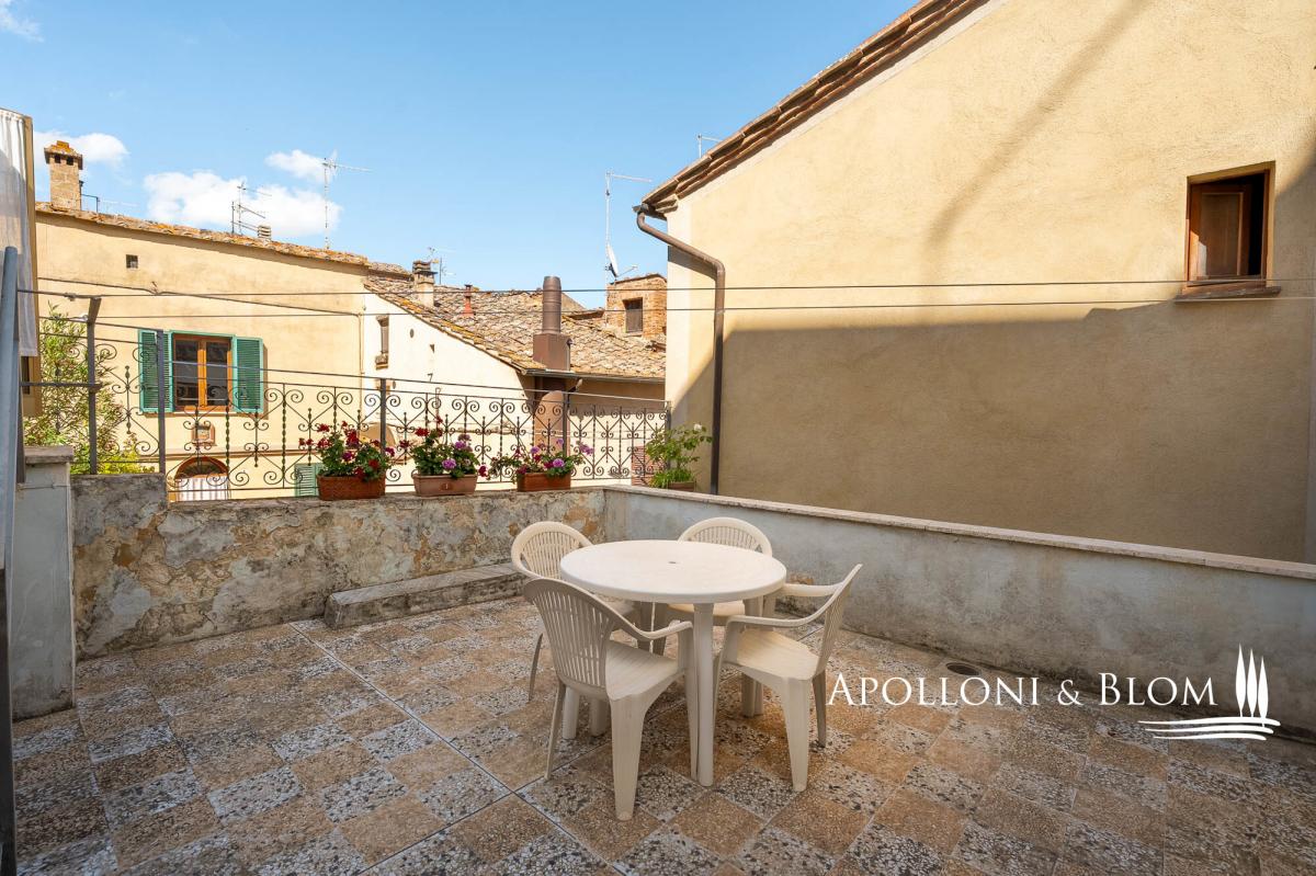 Character 1700s town house on two levels with terrace and separate cellar/tavern for sale in the historic center of Montepulciano, Siena. Beautifully preserved 17th-century terraced house combined with the comfort of outdoor space thanks to its panoramic terrace. Retaining all the character of its historical origins, it spans over 100 square meters on two levels it includes a a bright living room on the ground floor while upstairs, a fully equipped kitchen and two bedrooms—each with en-suite bathroom. The true highlight of this property is its 25-square-meter panoramic terrace, an open-air retreat ideal for morning coffee or evening aperitivos while overlooking the rooftops of Montepulciano. An internal staircase leads to a cozy study, perfect as a reading nook, home office, or quiet hideaway. Adding further appeal is a separate 56-square-meter cellar with its own independent entrance. This versatile space can be used for wine storage, as a tasting room, or even transformed into a creative or leisure area. Prime location to fully experience the charm and vibrancy of Montepulciano’s center, with shops, restaurants, and cafés just a short stroll away. Whether you're seeking a refined private residence or an investment property in the heart of Tuscany, this is a unique opportunity to own a piece of living history. PROPERTY Ref: MTP1594 Location: Montepulciano, Province: Siena, Region: Tuscany Type: 100 sq m/1076 sq ft town house on two levels with a 25 sq m/269 sq ft terrace and a 56 sq m/602 sq ft separate rustic cellar/tavern Year of construction: 1600 Utilities: Fixed telephone network: available Intenet: broadband to be activated Heating: methane Water: mains city supply Electricity: available Distance from services: walking distance Distance from the main airports: Perugia 73 km/45 miles, Florence 123 km/76 miles, Rome 212 km/131 miles Layout: Ground Floor: living room; 56 sq m/602 sq ft ustic cellar/tavern on the ground floor, separate access First Floor: kitchen, 2 bedrooms with en-suite bathroom, study, terrace.- terrace