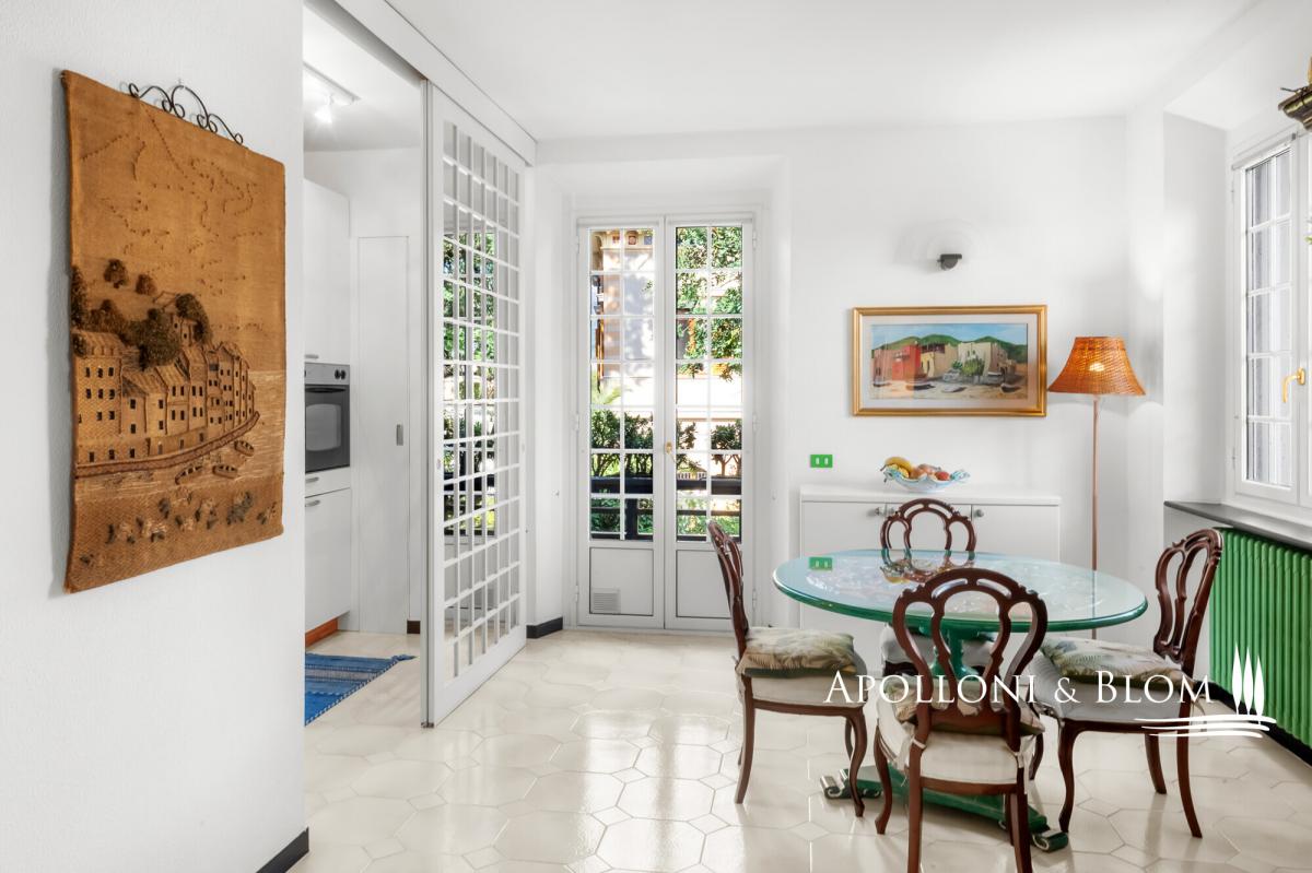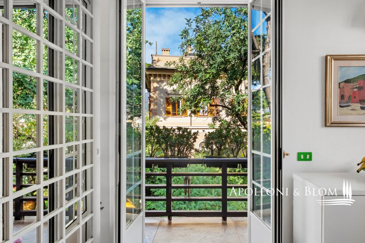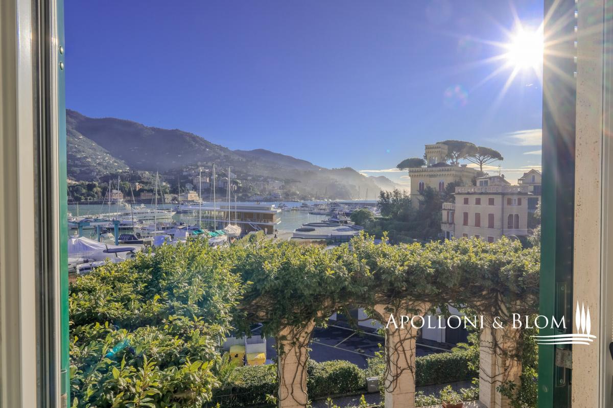 facing the Port of Rapallo. Overlooking the harbour of Rapallo, this elegant sea-front apartment enjoys a privileged position directly facing the port and the open Ligurian horizon. Set within an exclusive residential enclave composed of refined Riviera villas surrounded by a mature private park, the property offers tranquillity, security and immediate proximity to the waterfront and town centre. Accessed through an electric gate and nestled within a well-maintained condominium garden with caretaker’s lodge, the residence forms part of the first villa within the compound. The apartment is located on the second floor, reached via broad and comfortable stairs, and extends to approximately 115 sq m (1,237 sq ft). Its elevated position allows natural light to flood the interiors while framing uninterrupted views across the marina and the sea beyond. The entrance opens onto a bright living room distinguished by two generous windows and a balcony facing the port, creating a natural panorama of the harbour and coastline. A discreetly integrated kitchenette is carefully arranged off the living room. The master bedroom is spacious and luminous, featuring an en-suite bathroom and access to a second balcony overlooking the greenery of the park. Adjacent are two further bedrooms: a well-proportioned double bedroom and a third room suitable as a single bedroom, study or home office. A second bathroom completes the internal layout. Despite its central location just steps from the port, shops and waterfront promenade, the apartment remains immersed in the calm atmosphere of the private park that surrounds the villas. The landscaped grounds provide a natural extension of the home, offering residents shaded areas beneath mature trees where one may relax, read or simply enjoy the quiet greenery. The property is completed by a spacious cellar at ground level and a reserved outdoor parking space within the compound, a valuable feature in the port district of Rapallo. Positioned between the sea and the gardens, the apartment offers a refined Riviera residence where maritime views, privacy and everyday convenience come together in a setting of understated elegance. PROPERTY Ref: RAP3586 Location: Rapallo, Province: Genova, Region: Liguria Type: 115 sq m/1237 sq ft sea-front 3-bedroom apartment on the second floor of a Riviera villa within a luxury residential compound with condo park, private parking and basement cellar Conditions: excellent Terrace/Balcony: 2 balconies Parking: outdoor parking facility with 1 reserved car-seat Utilities: Fixed telephone network: available Internet: available Heating: methane Water: mains city supply Electricity: available Water waste: mains city connection Distance from services: on foot Distance from main airports: Genoa 40km Layout: Second Floor: living room with balcony, kitchenette, 1 double bedroom with en-suite bathroom and a balcony, 2 bedrooms, 1 bathroom- parking