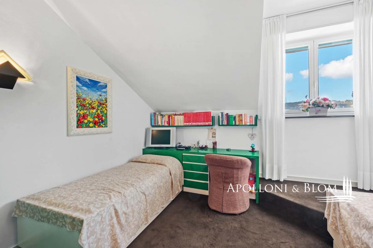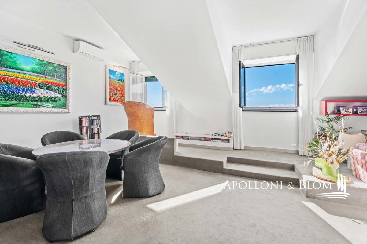 Panoramic top-floor apartment in a residence with gardens, terraces, a swimming pool, parking space, and a storage unit for sale in Santa Margherita Ligure. Located on the top floor of a prestigious residential complex, this apartment offers breathtaking views of the coastline and the sea, creating a truly unique atmosphere. The residence is designed to provide maximum comfort, featuring beautiful gardens, panoramic terraces, and a magnificent swimming pool—perfect for moments of relaxation. The entrance opens onto a bright hallway leading to a spacious living room with large windows overlooking the sea. The open-plan, modern, and fully equipped kitchen blends seamlessly into the space, creating a perfect setting for both everyday living and entertaining guests. The sleeping area includes two spacious double bedrooms, designed to offer privacy and comfort. The two bathrooms, complete with both a shower and a bathtub, are fitted with high-end details for an enhanced daily wellness experience. PROPERTY Ref: SML3212 Location: Santa Margherita Ligure, Province: Genova, Region: Liguria Type: 135 sqm/1,453.13 sq ft top-floor apartment with 2 bedrooms and 2 bathrooms in a residence with shared gardens, terraces, and swimming pool Conditions: excellent Garden: well-maintained shared gardens Terrace/Balcony: panoramic communal terraces Swimming pool: in common, irregular shape with sundeck Parking: 1 private parking space Layout: Top floor: spacious living room with open-plan kitchen, 2 double bedrooms, 2 bathrooms Distance from services: all amenities within walking distance Distance from main airports: Genoa 42 km- parking