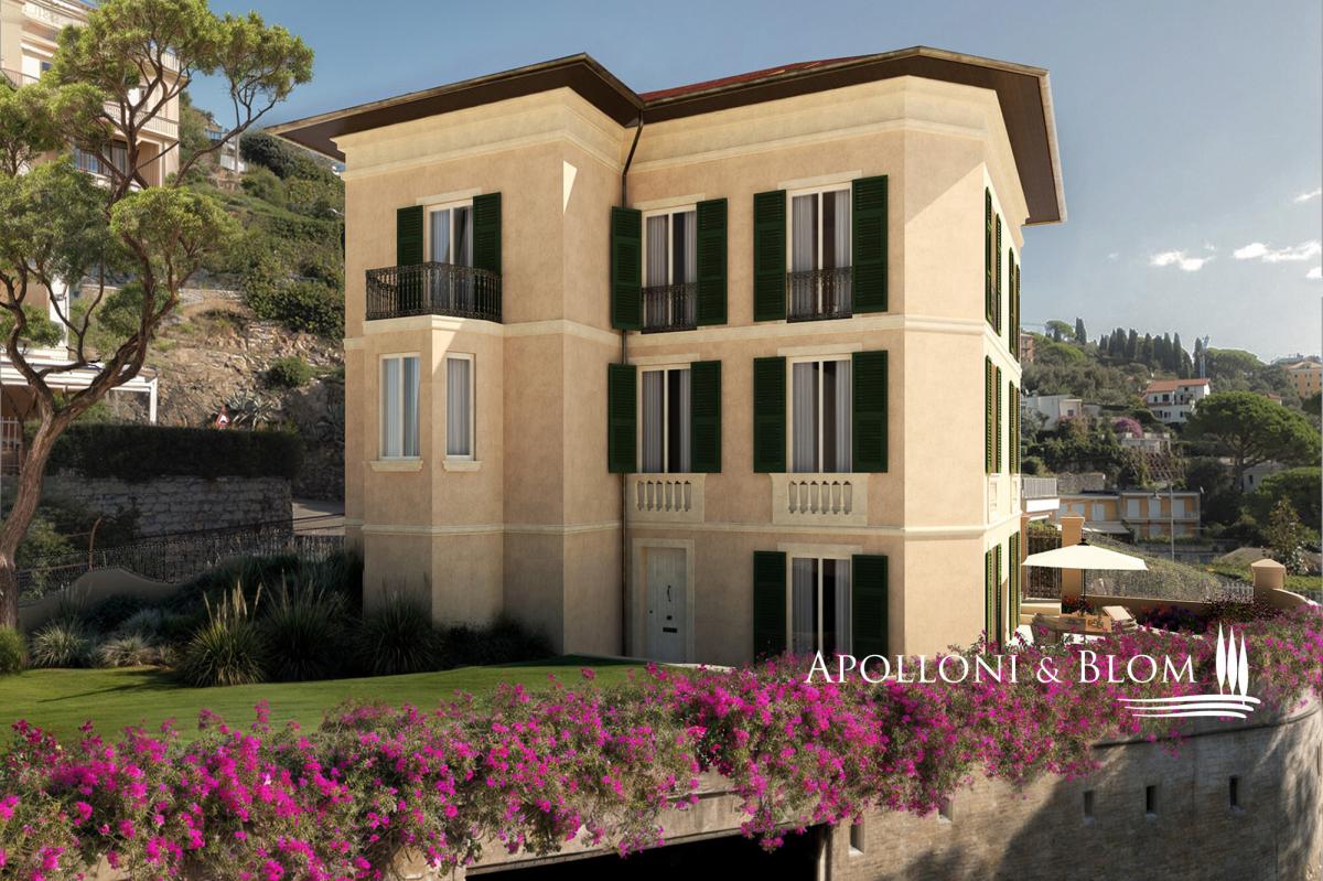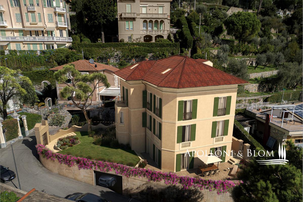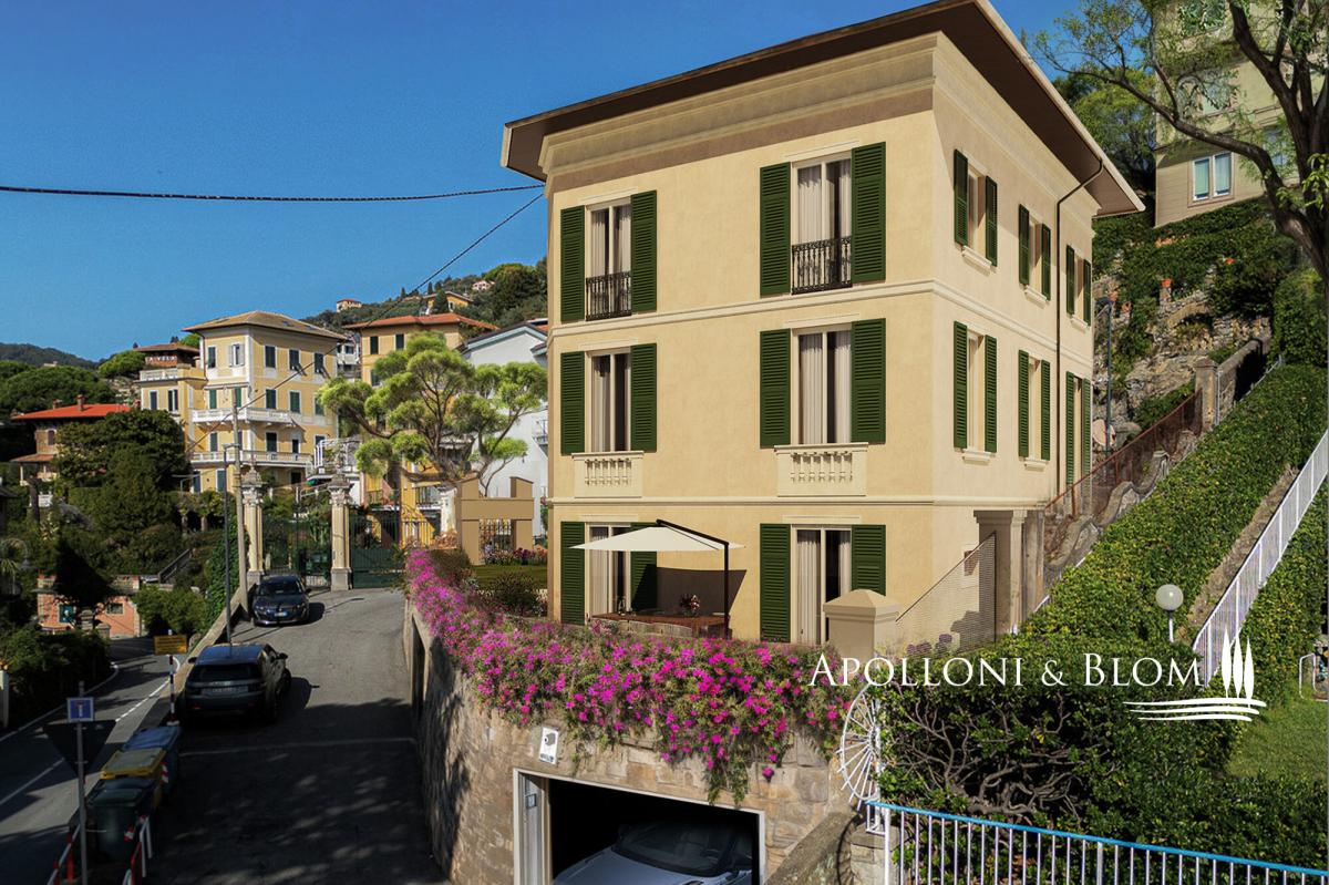 Two-level apartment under renovation, featuring panoramic views, high-end finishes, elevator, and private garage for sale in Santa Margherita Ligure. Situated on one of the most prestigious streets in Santa Margherita Ligure, just steps from all amenities and offering breathtaking sea views, this historic villa is being transformed into a luxurious residence. The project involves dividing the property into two independent units, each spanning two levels with separate entrances, ensuring absolute privacy. This apartment is located on the second and third floors and has been thoughtfully designed to offer maximum comfort. On the first level, you'll find an entrance, a kitchen with a dining area, a spacious living room, a bedroom, a bathroom, and a balcony. On the second level, accessible via the internal elevator, there are four bedrooms, a study, and three bathrooms. The interior layout can be customized to meet the buyer’s specific needs. The apartment will be delivered fully finished, with premium materials and an elegant design throughout. Completing the property is a convenient garage currently under construction, located directly beneath the residence. This is a unique opportunity to live in the heart of Santa Margherita Ligure, in an exclusive residence that combines sophistication, comfort, and a prime location. PROPERTY Ref: SML3226 Location: Santa Margherita Ligure, Province: Genoa, Region: Liguria Type: 250 sq m/2,700 sq ft two-level apartment in historic villa Conditions: under renovation, high-end finishes Garden: shared Terrace/Balcony: balcony on the first level Parking: private garage (under construction) Layout: 1st level: entrance, kitchen with dining area, spacious living room, 1 bedroom, 1 bathroom, and balcony 2nd level: 4 bedrooms, study, 3 bathrooms, accessible via internal elevator Distance from services: central location, walking distance to all amenities Distance from main airports: Genoa 42 km/26 miles- garage