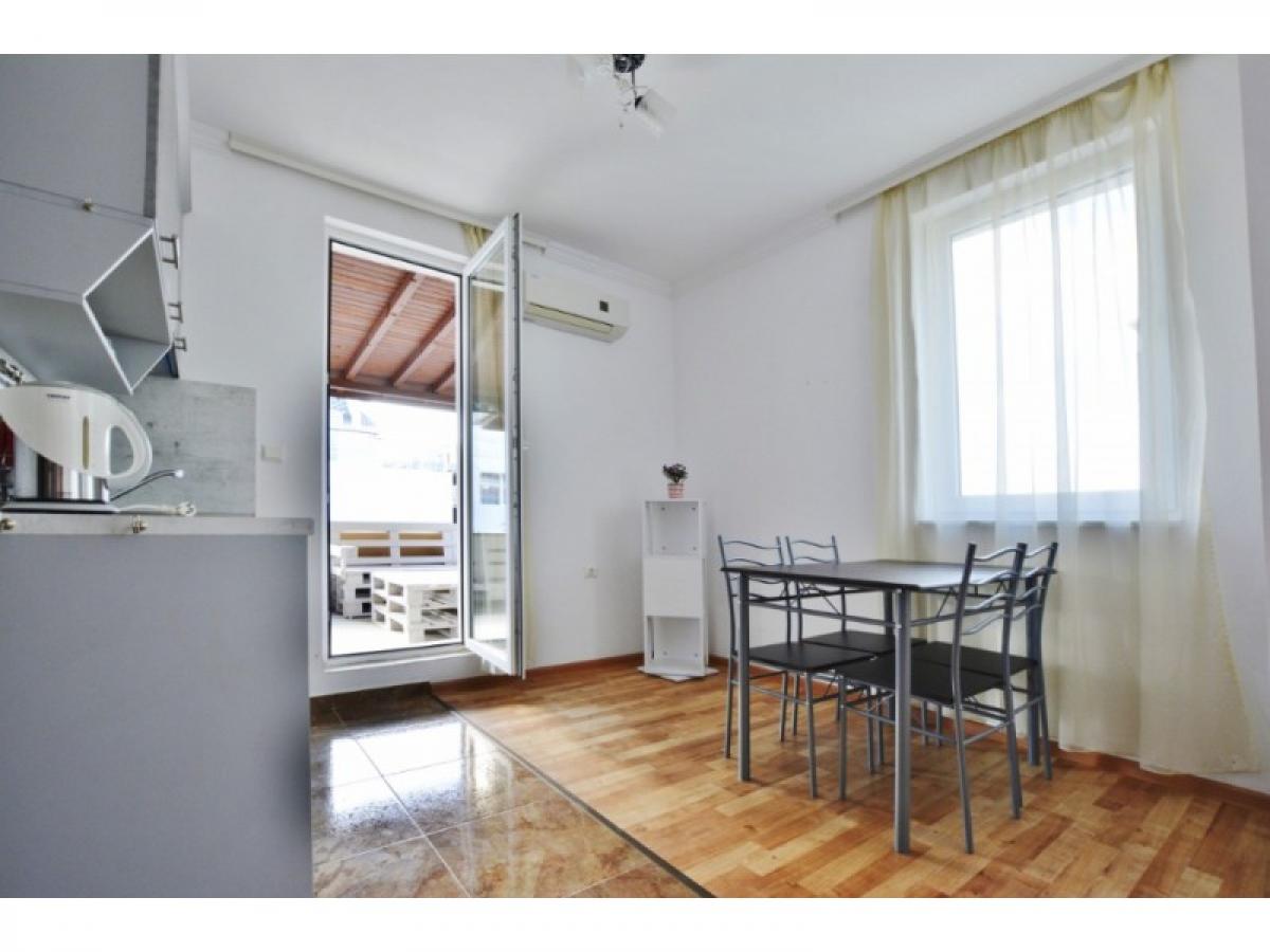 Apartment No. 40 is a peaceful apartment on the top floor with a big roofed terrace with a grill and a big sofa. The terrace makes this apartment no.1 among others in this area. it's only a 5-store house with lift. Trees and small buildings around give you privacy feeling. The building is fully fenced, with a small garden, small pool and a parking area. The apartment is spacious with one bedroom, one living room connected to the kitchen, a hall, a bathroom with a toilet and a shower, a small balcony and the big roofed terrace protected from the sun and rain. it's furnished with a strong bunk bed - unforgettable sleep for children - and a sofa for two in a bedroom, another sofa for two in a living room and a chair for one. A fully fitted kitchen cabinets, two dinner tables - indoor and outdoor, TV, aircon, WiFi, 500m to the Sea.