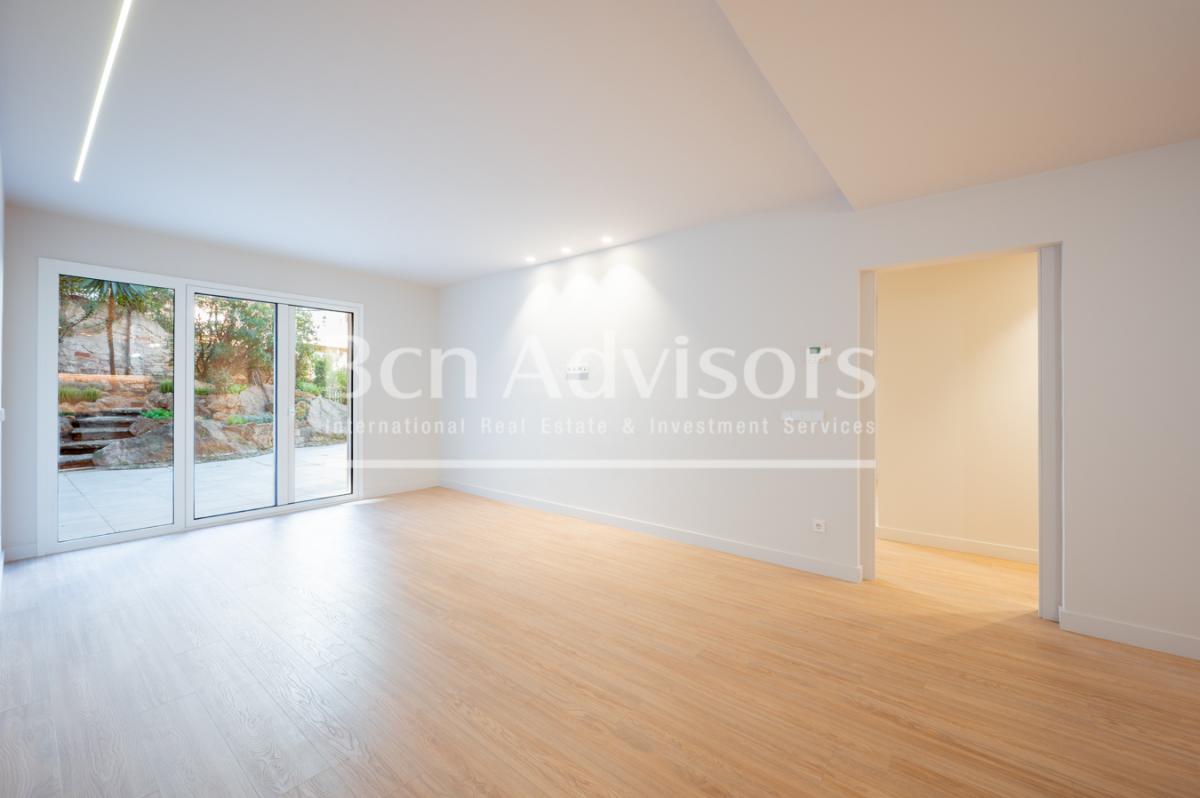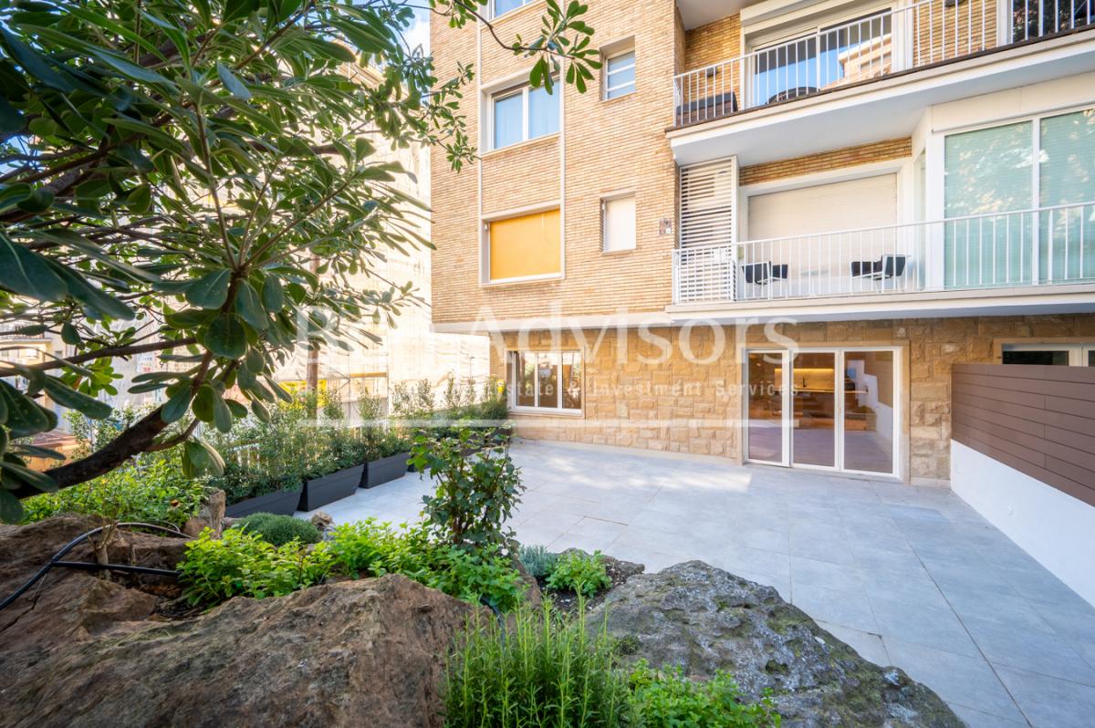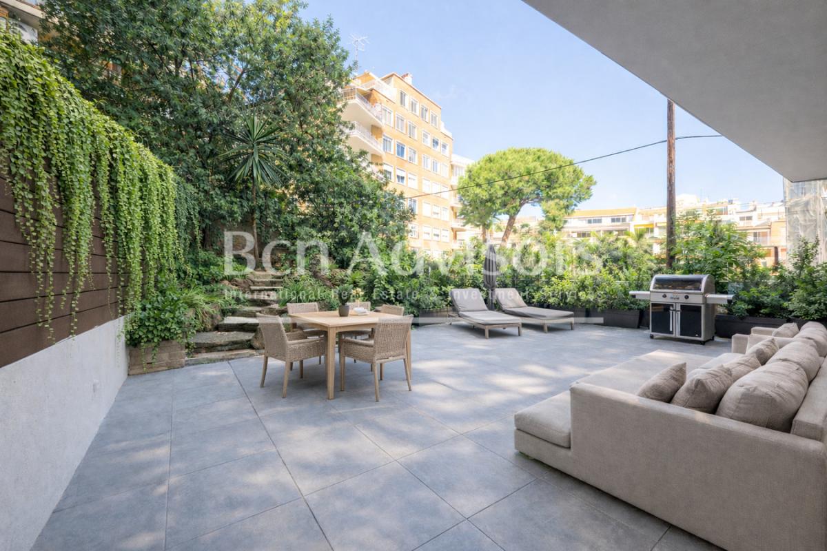 We present a magnificent refurbished apartment, located in one of the most exclusive areas of Barcelona, right next to Monterols Park. This first-floor property offers direct access to a spectacular 104 m2 garden-terrace, a private space ideal for enjoying the outdoors, hosting gatherings, or creating a relaxing oasis in the heart of the city.The home offers 160 m2 of well-planned living space with a functional and elegant layout: 4 spacious double bedrooms, including a master suite with direct access to the garden; a large and bright living-dining room, also connected to the outdoor space; a modern open-plan kitchen, featuring a wine cellar area and integrated dining space; 3 full bathrooms, one of them with a walk-in closet; a practical laundry area. Additionally, the property includes an exterior storage room accessible from the garden, providing extra comfort and storage capacity.