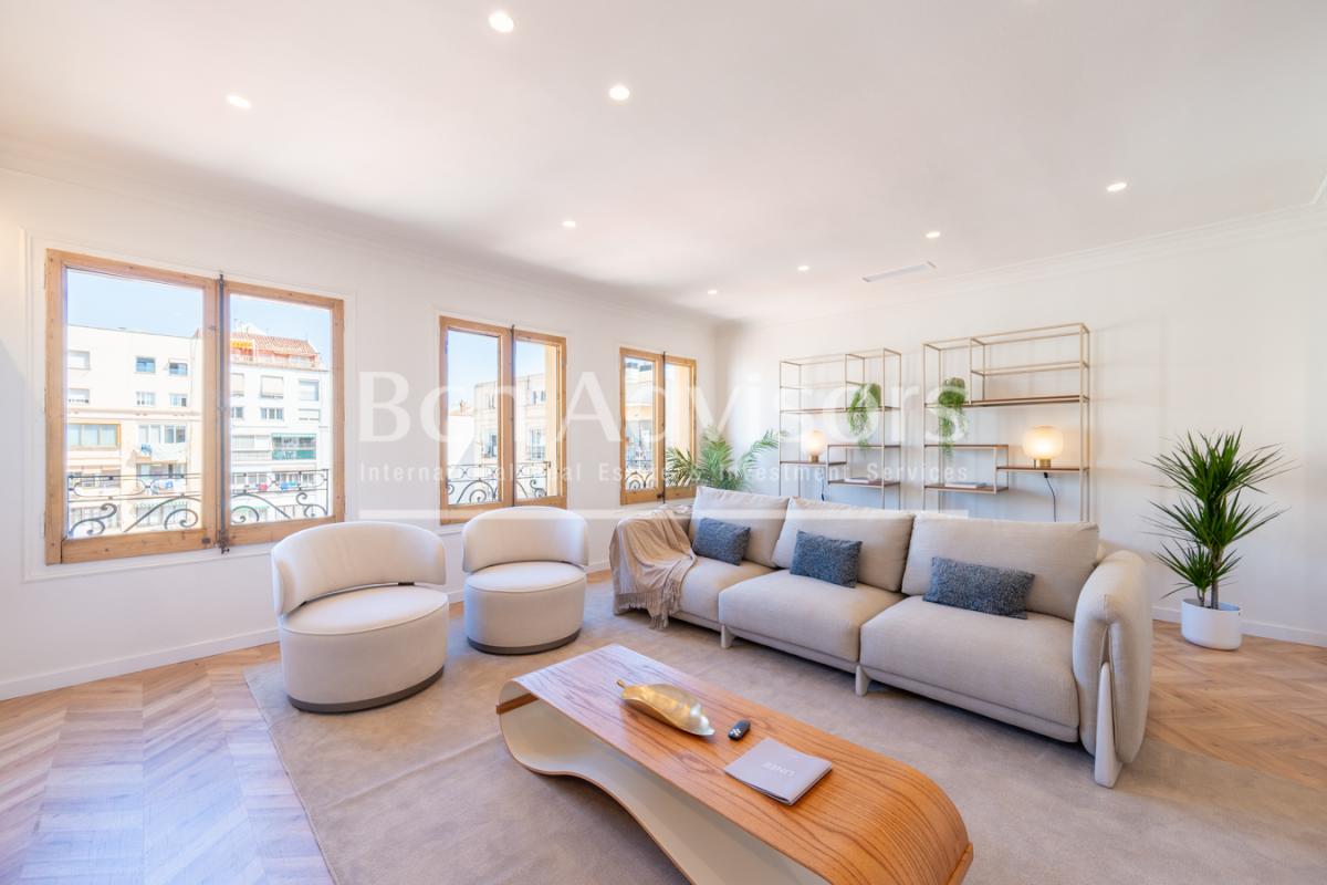 The renovation of the flat is simply spectacular and high-end. It is equipped with herringbone parquet flooring, ducted hot/cold air conditioning, fitted wardrobes, a decorative fireplace in the living room and restored woodwork.