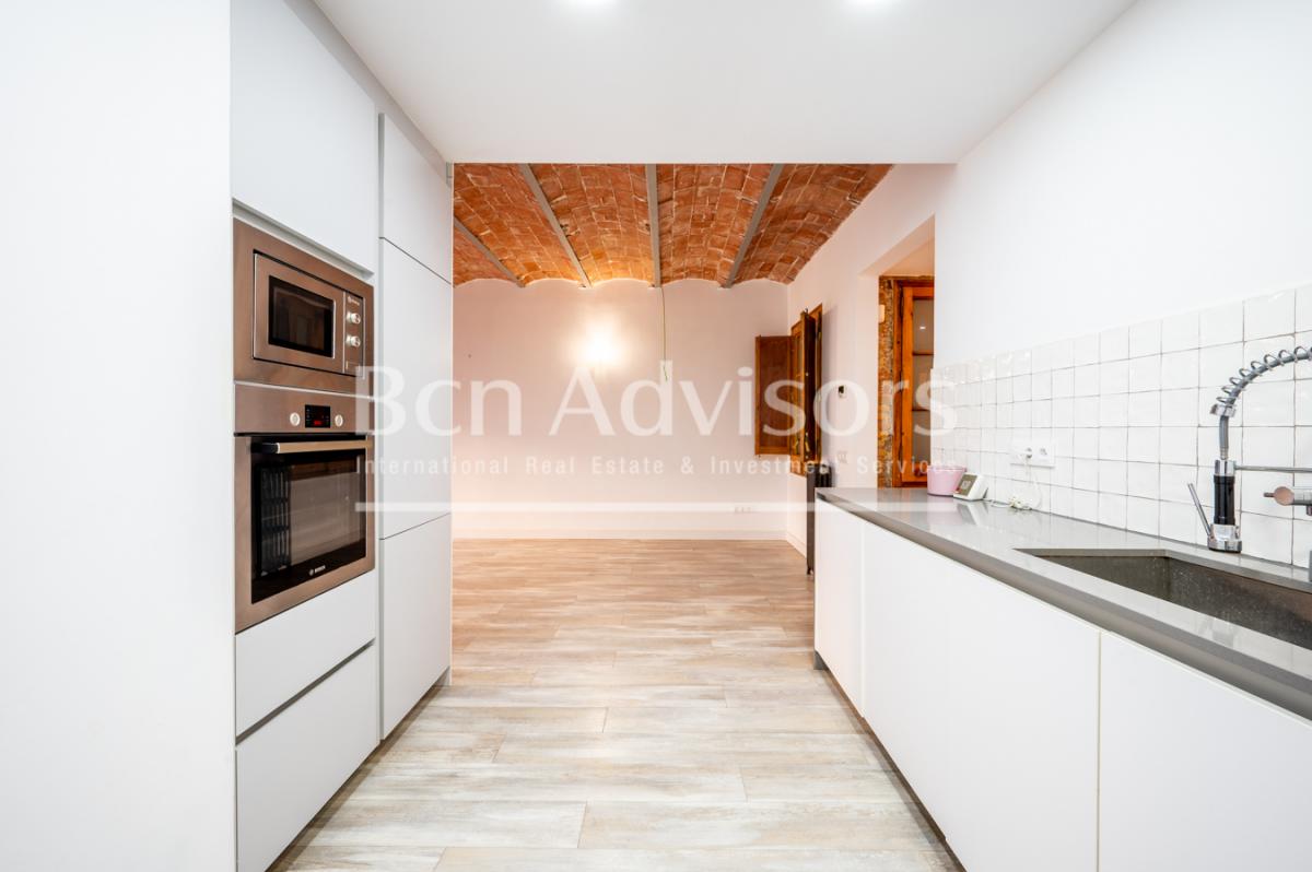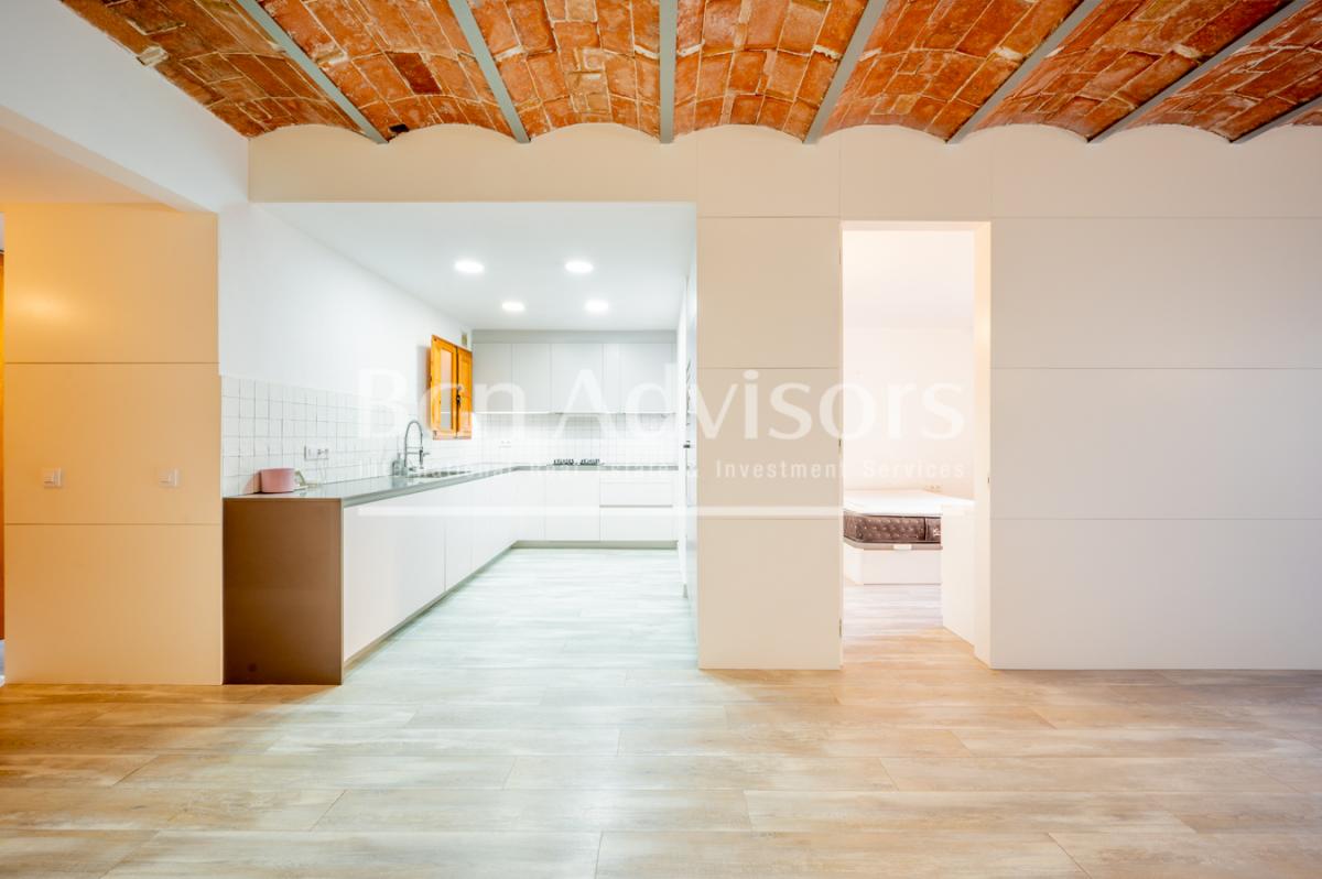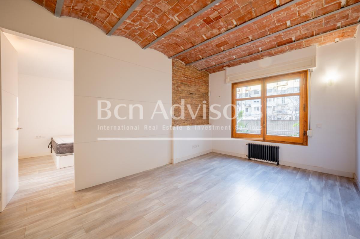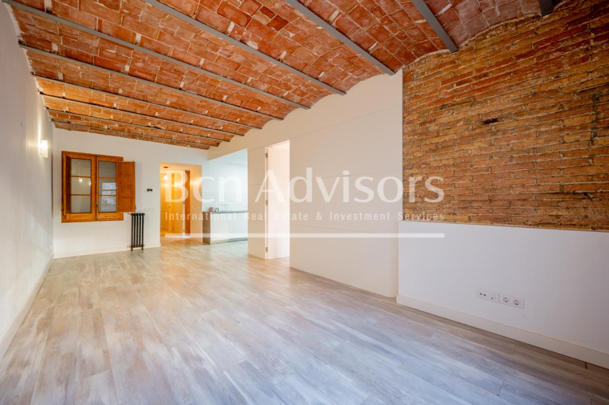 This beautiful flat is located in the upper part of Eixample's right side, just two streets away from Paseo de Gracia and very close to Casa de les Punxes, Avenida Diagonal and the Gracia neighbourhood. It is an enviable location where you can enjoy neighbourhood shops, top brand boutiques, all the necessary services, cafes and restaurants, leisure activities and many public transport options.The property was recently renovated with high-quality materials and finishings and is in perfect condition. It stands out for its original features such as high ceilings with Catalan vaulting, restored exposed brick walls and restored original woodwork. It is on the first floor of a classic building with a lift. It enjoys plenty of natural light and is very quiet, as it overlooks the inner courtyard.