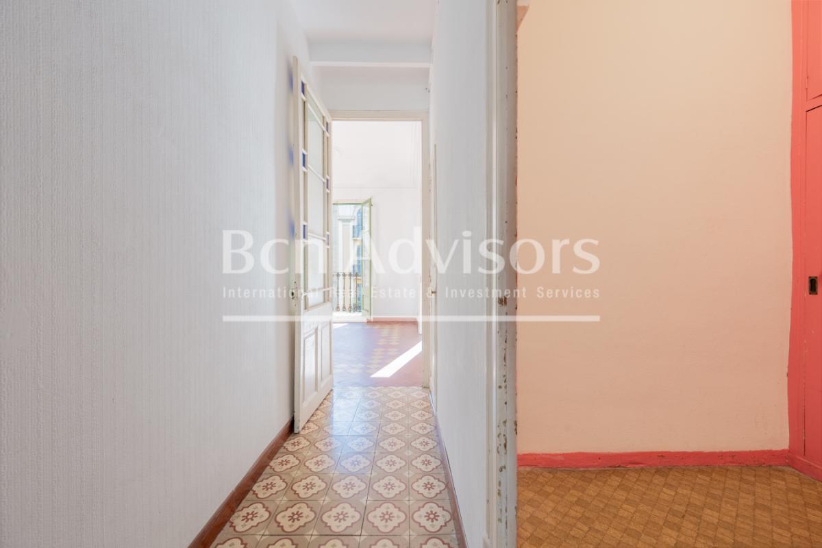 This apartment in need of renovation is located on the 4th floor of a stately building in L'Antiga Esquerra del Eixample, with only one flat per floor. It faces both the street and the block courtyard, making it very bright. It also retains original features from the period in which it was built, such as hydraulic floors, Catalan vaulted ceilings and wooden beams.The flat enjoys a privileged location in the upper part of the Eixample district, just two streets away from Avenida Diagonal and three streets away from Rambla Catalunya and Paseo de Gracia. The area is quiet and has numerous services and shops, from neighbourhood shops to top brand boutiques, bars and restaurants, schools, medical centres, public transport and a wide range of leisure activities.