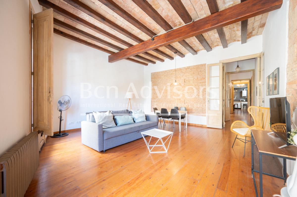 This beautiful flat maintains the charm of its original features such as the very high ceilings with restored Catalan vault with wooden beams and exposed brick walls. It's located in the heart of the historic centre of Barcelona, surrounded by its historic streets and squares, close to Plaza Real and Paseo Colon.The property has 110 built sqm and is on the first floor. The living-dining room is spacious and overlooks a large square, which provides a wonderful open view and plenty of natural light. It also has a balcony. The kitchen is semi-open and is equipped with household appliances.