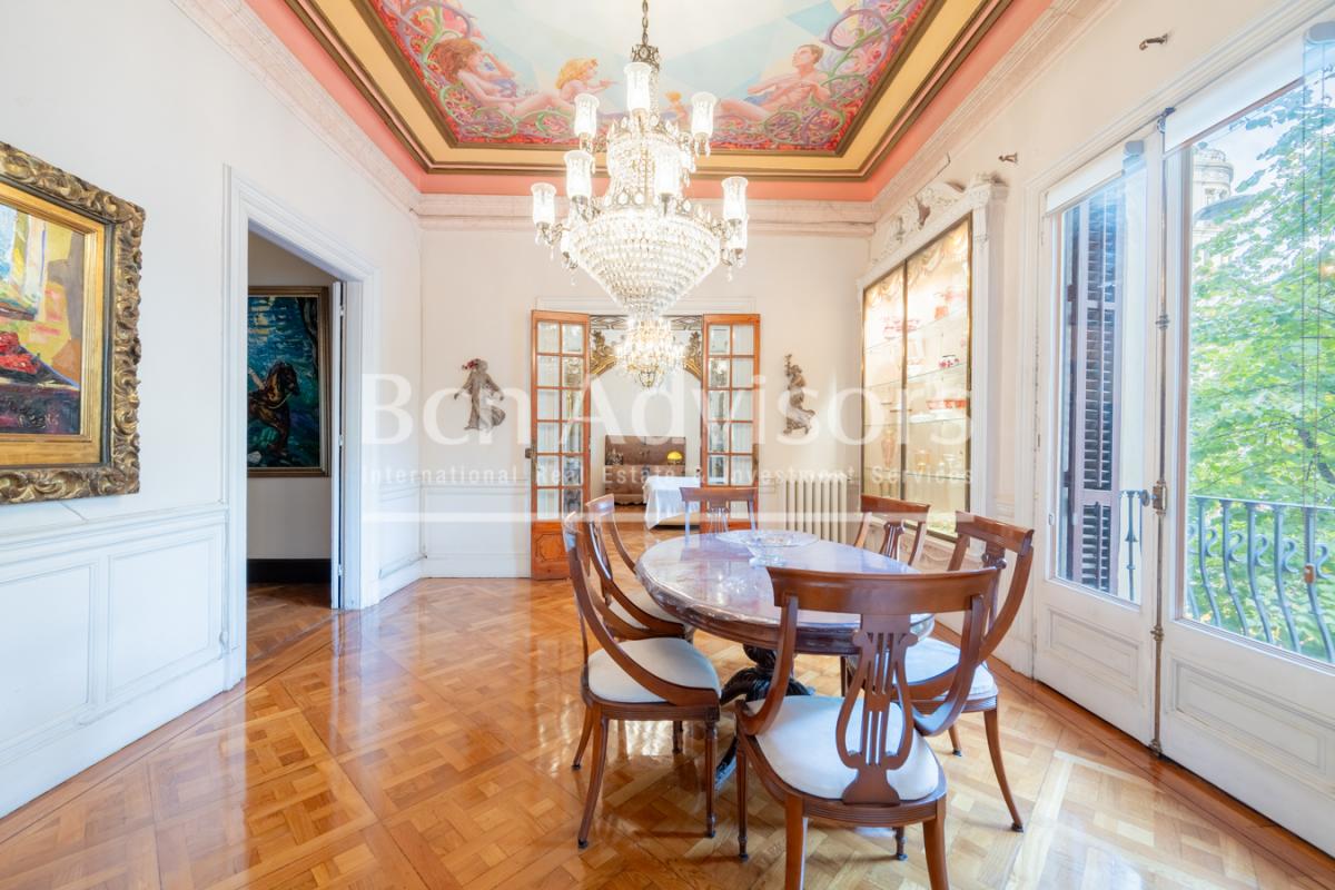 This flat stands out for its original modernist features such as original paintings on ceilings and walls and double gallery. It is located in a beautiful and recently refurbished building with lift and concierge. Its location is perfect in the "Quadrat d'Or", very close to Avinguda Diagonal and Casa de les Punxes, and 3 streets away from Passeig de Gracia and Passeig Sant Joan.The property has a surface area of 228 sqm according to the Land Registry (202 sqm of living space and 26 sqm of common areas). It's located on the first 'Principal' floor, the most noble one with high ceilings and a great sensation of spaciousness and brightness. It is corner and practically all of it is exterior to the street with east and south orientation. Its fan-like distribution allows the reform to create spaces to the taste of the new property.