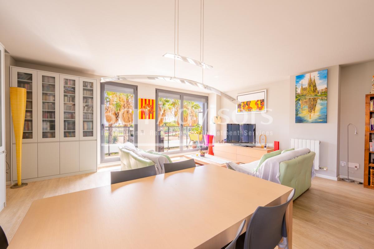 This fantastic corner flat with sea views and plenty of natural light is located in a 2016 building with a communal terrace and swimming pool on the roof. The price also includes a parking space with capacity for 2 cars. Located in the Diagonal Mar neighbourhood, just a few steps from Mar Bella beach, it allows you to enjoy the Mediterranean and urban Barcelona in all its splendour.The property has 130.5 built interior sqm and an 8.5 sqm terrace. The living-dining room is spacious and bright, with access to the terrace and spectacular open views of the sea. It is the perfect place to have a drink or simply relax in Barcelona's pleasant climate. The kitchen is separate and fully equipped with Siemens appliances.