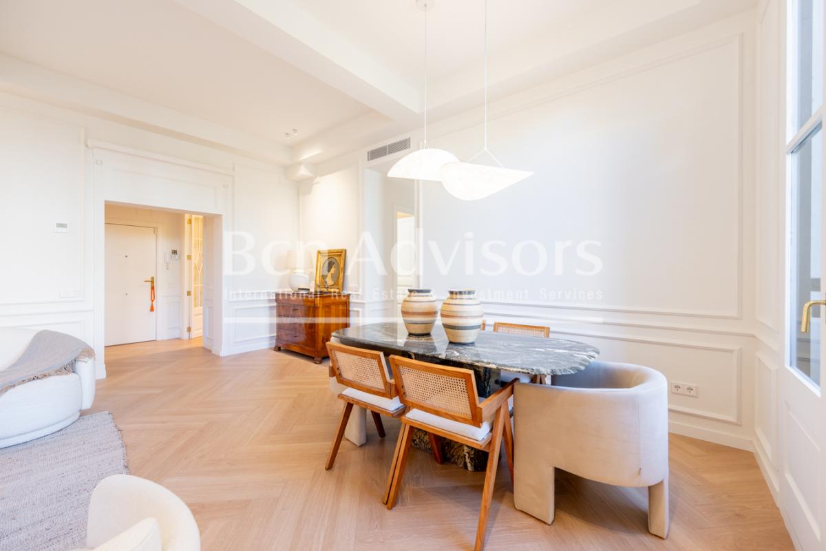 In the heart of the city, a 19th-century architectural gem has been reborn in all its splendour. On the second floor of a distinguished corner building dating from 1865 in the pedestrian street Girona, completely rehabilitated in 2021, lies this 94 sqm property, where the past and the present intertwine in perfect harmony.As soon as you cross the elegant entrance hall of the building—designed for both residents and vehicles—you can feel the majesty of another era. The original details, carefully restored, coexist beautifully with a comprehensive renovation that has preserved the noble essence of the building while incorporating every modern comfort.