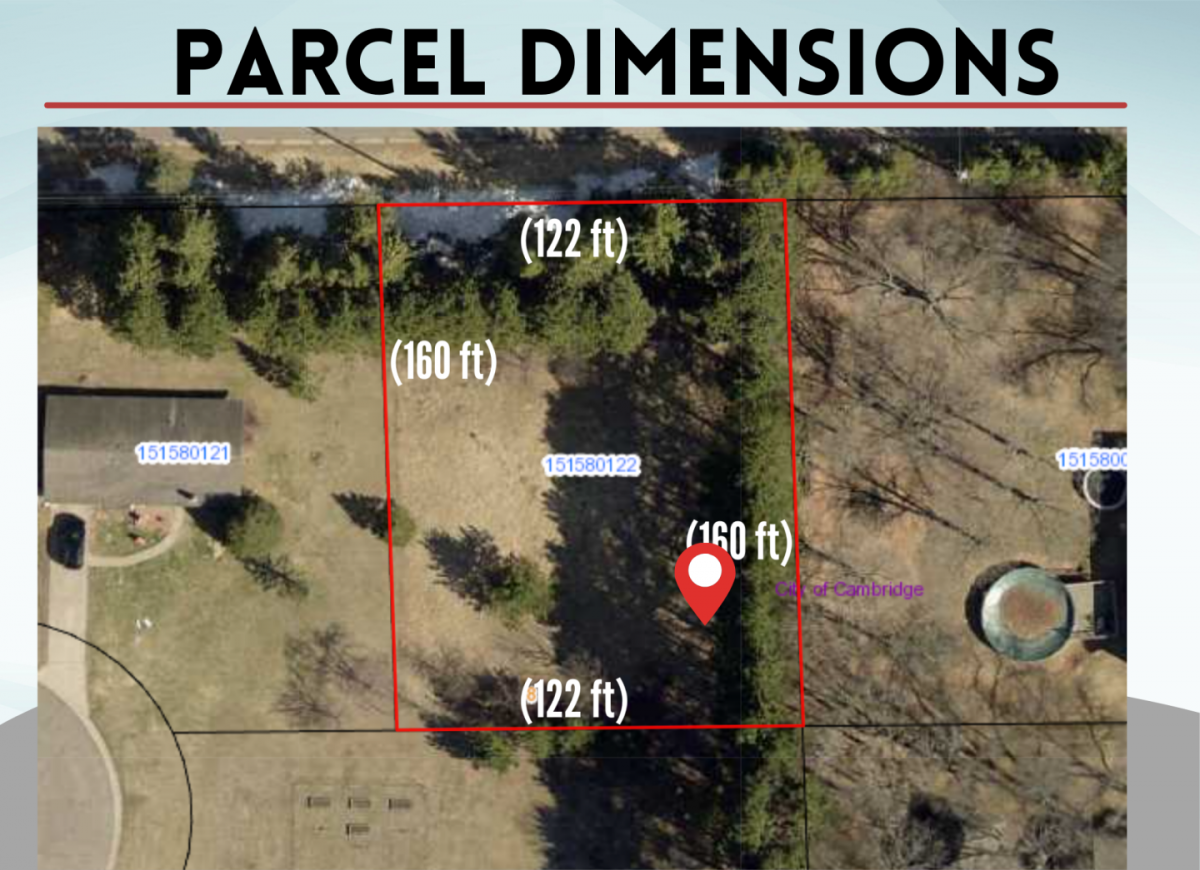 0.44 Acres. 19,166 Sq Ft. Cambridge, MN 55008 Isanti County Parcel#/APN: 15.158.0122 (151580122) GPS Coordinates: 45.543438, -93.239273 City Utilities Available Buildable Lot Annual Tax: $938.08 Legal Description: SECT-08 TWP-035 RANGE-023 WOODLAND PARK LOT-008 BLOCK-002 .44 AC E 122.5' OF LOT 8, BLK 2 Cash Price: $44,000 FINANCING AVAILABLE with Flexible Terms!! Call Us @ (888)704-6445 for more Info!