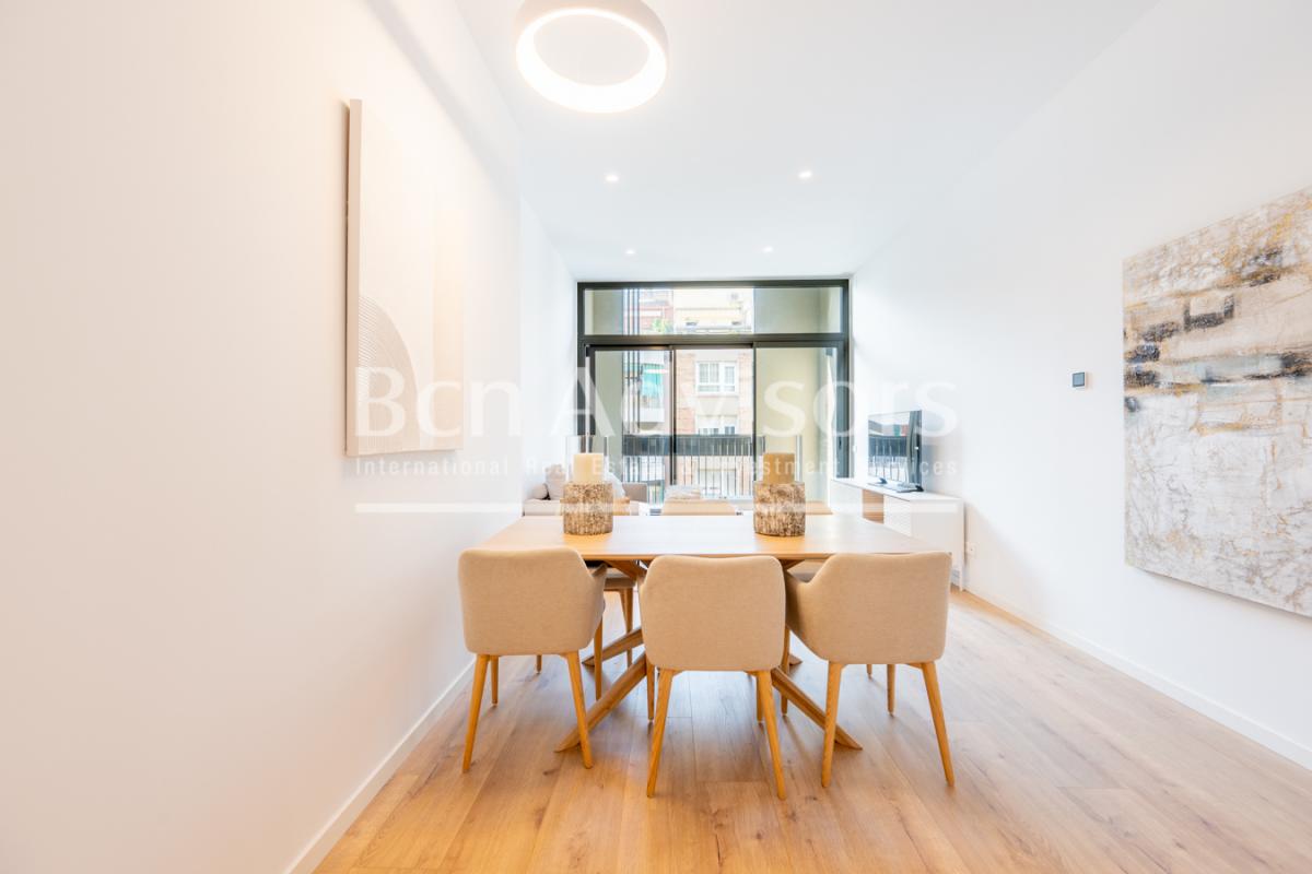 This property is part of an elegant new-build building located in the heart of the Eixample district, in the heart of the Sagrada Familia neighbourhood. It's one of the last five units available, an exceptional opportunity to purchase a property in an exclusive development in one of the most sought-after areas of Barcelona.Located on the fifth floor and facing the street, the property has a total surface area of 125.3 sqm, distributed over 104.4 built interior sqm, a private terrace of 5.2 sqm and 15.7 sqm of common areas. The building also has a large communal terrace with stunning panoramic views of the city, where La Sagrada Familia takes centre stage with the mountains in the background.