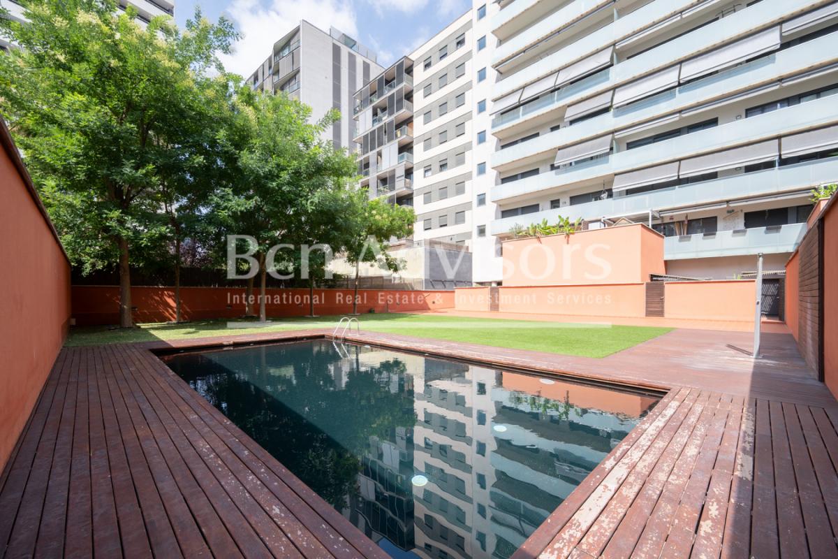 This property is next to Poblenou Central Park, a fantastic location with excellent transport links by bus, metro and tram. The area has all the shops and services you need for everyday life, with Diagonal Mar and the Mar Bella beaches nearby.The flat is located on the ground floor of a building with a garden and swimming pool. It has 98 built interior sqm and a private 20 sqm terrace, which provides direct access to the communal area. All rooms have access to the terrace through glass doors, which makes the flat very bright. In addition, the entire flat faces the communal area and not the street, ensuring privacy and tranquillity.
