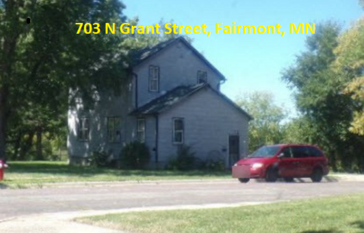 Occupied Single Family Reduced to $24,900 Firm! seller is looking for offers at or above $24,900. Home is situated at the end of a dead-end street. NO interior showings! Investor special! Located at 703 N Grant Street, Fairmont, MN 56031. Do not disturb occupants. Trespassing is a criminal offense. Features 4 bedrooms and 1 bath, living space approx. 1,216 square feet. This Home is a Recent foreclosure and will require some form of updating/repairs as this is an older home, of which our office does not assess. All Wholesale Assets are sold as is. Since this property is just out of foreclosure seller would not have Any type of previous information nor details of its rent/lease amount payment etc. Seller is only interested in liquidating default assets and does not contact occupants nor does our office. New buyer to workout rent/lease payment/terms or evict occupant etc. Once sale is Complete! Two Story home Built in 1954 and sitting on an approx. 6,900 square foot Lot also known as 0.16 acres of land. Our office has over 30 Nationwide Assets to liquidate. Average price $6,900 to $44,900. All offered well below wholesale value, if interested, please email our office for a complete list. https://propertysource-wholesalers.com