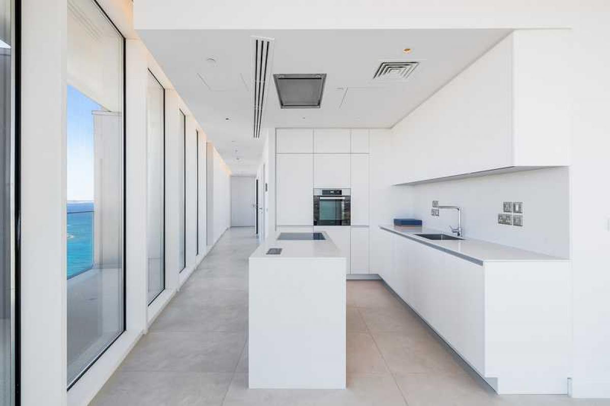 Each apartment has a unique layout, strategically designed to ensure that all living spaces, including bedrooms, face the captivating waterfront and pristine beaches. Modern open-plan designs dominate, maximizing both daylight and breathtaking views. The living rooms feature full-height glass doors that seamlessly open, extending the living area onto the covered veranda.