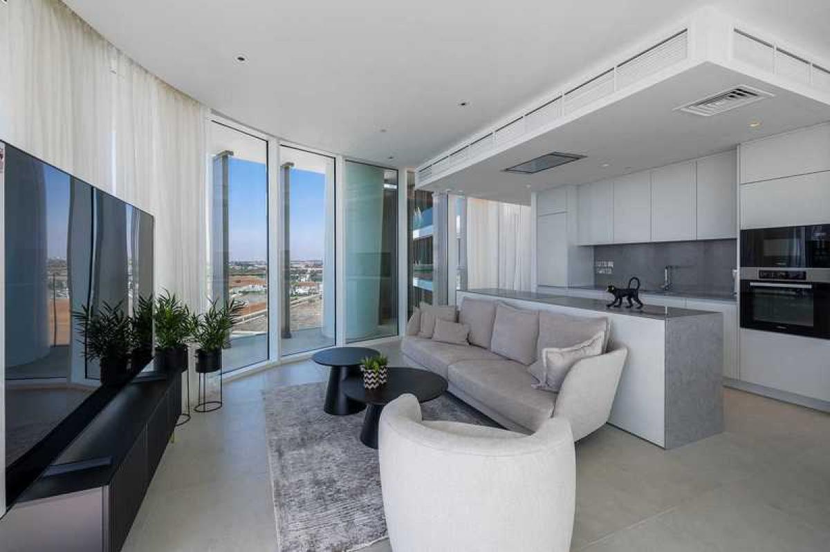 Discover these luxury 2-bedroom apartments nestled in the East Tower within the thriving commercial heart of Ayia Napa Marina, presenting a lively and dynamic environment for both residents and guests.Its spacious lobby boasts a distinctive sculptural ceiling that gracefully reaches a height of twelve meters above the floor. Encircled by an all-glass exterior curtain wall featuring structural glass mullions, the space bathes in an abundance of natural light, providing a direct panoramic view of the bustling commercial area and Event Centre.