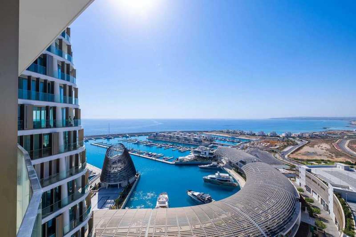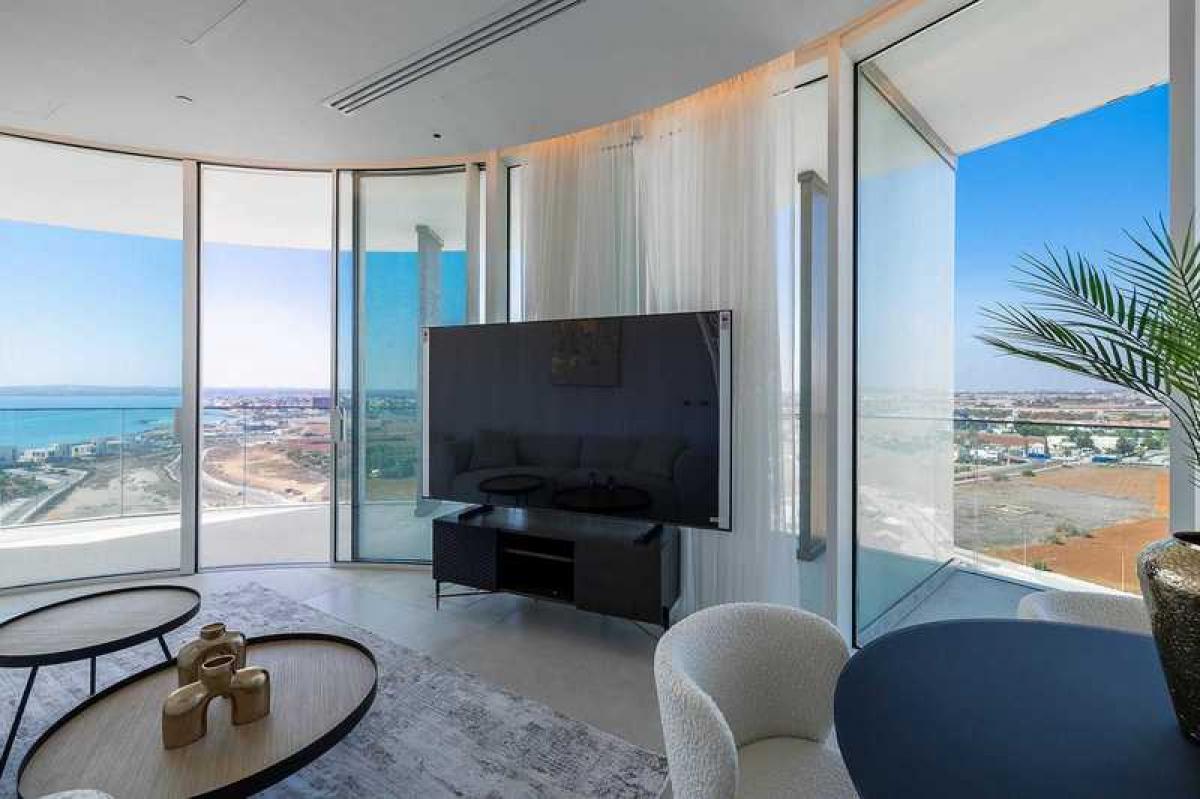 Discover these luxury 2-bedroom apartments nestled in the East Tower within the thriving commercial heart of Ayia Napa Marina, presenting a lively and dynamic environment for both residents and guests.Its spacious lobby boasts a distinctive sculptural ceiling that gracefully reaches a height of twelve meters above the floor. Encircled by an all-glass exterior curtain wall featuring structural glass mullions, the space bathes in an abundance of natural light, providing a direct panoramic view of the bustling commercial area and Event Centre.