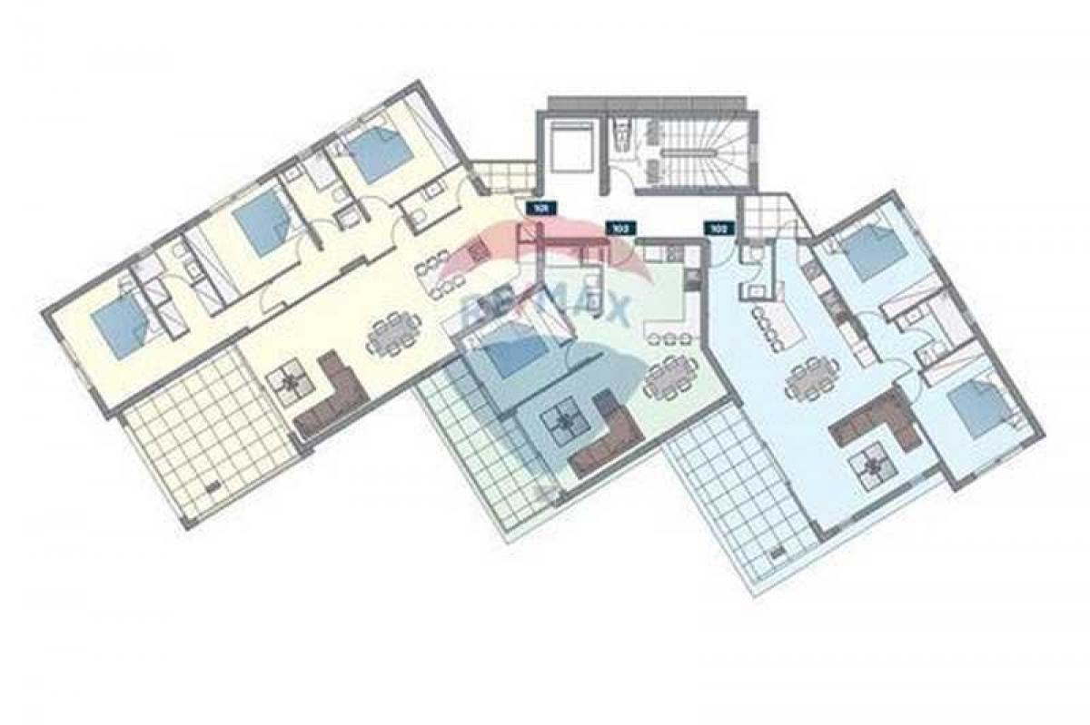 Apartment 102- This project is located in Germasogeia Hills, close to all facilities and it is only 5-minutes' drive to the highway road. It consists of 10 luxurious modern apartments and all flats enjoy the same panoramic and breath-taking views of Limassol's coastline.This apartment is situated on the first floor of the building, and it consists of an open plan kitchen/dining/living area, one guest toilet, two bedrooms and one family bathroom.