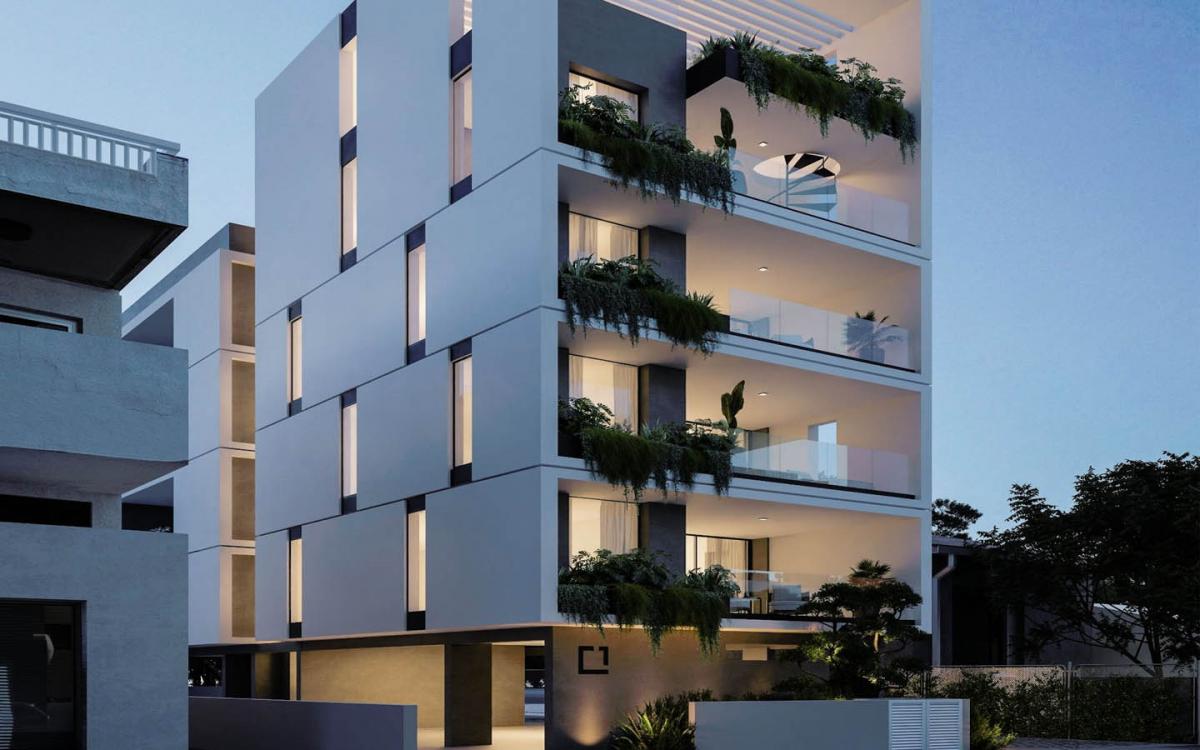 This project, in which the apartment is nestled, seems deliberately detached from banality. Here, minimalism is not about simplicity — it's an expression of intellect. Every element of the facade, from the strict geometry of the balconies to cascading greenery, contributes to a refined architectural language. This building is more than just a structure; it's a statement — elevating Agia Zoni's profile with a new standard of urban elegance.