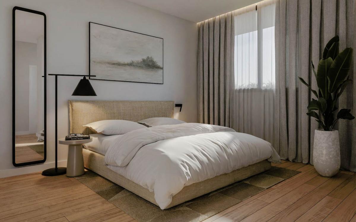 A small yet cozy apartment on the edge of a vibrant coastal metropolis, bathed in the soft morning light, evokes a distinct sense of charm. Filled with fresh Mediterranean air, it opens onto a horizon just outside the window. The gentle rustle of curtains on open windows sets an optimistic tone as the suburban landscape awakens in slow motion. A broad balcony, part of a contemporary architectural design, answers the modern resident's need for aesthetic surroundings — long before a single step is taken inside.