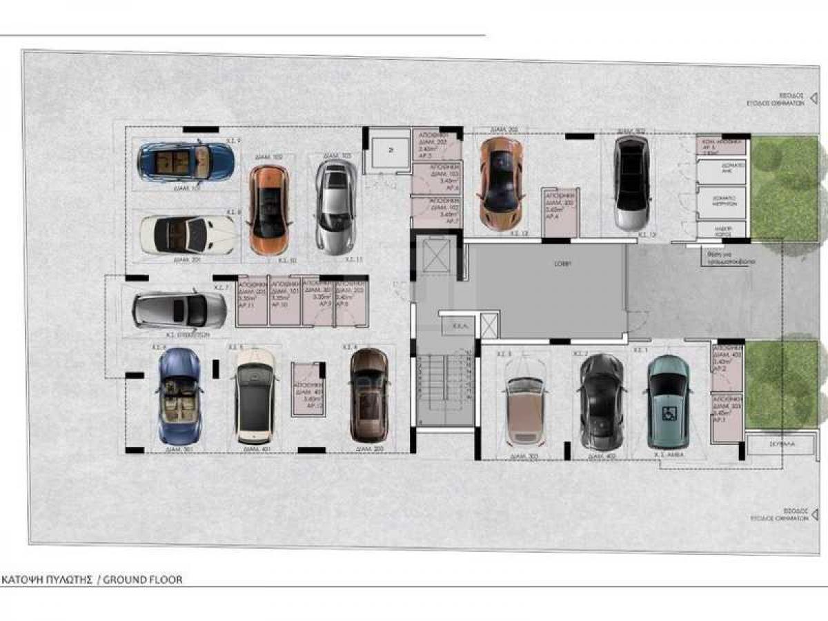 Διατίθεται χώρος στάθμευσης και αποθήκη για κάθε διαμέρισμα