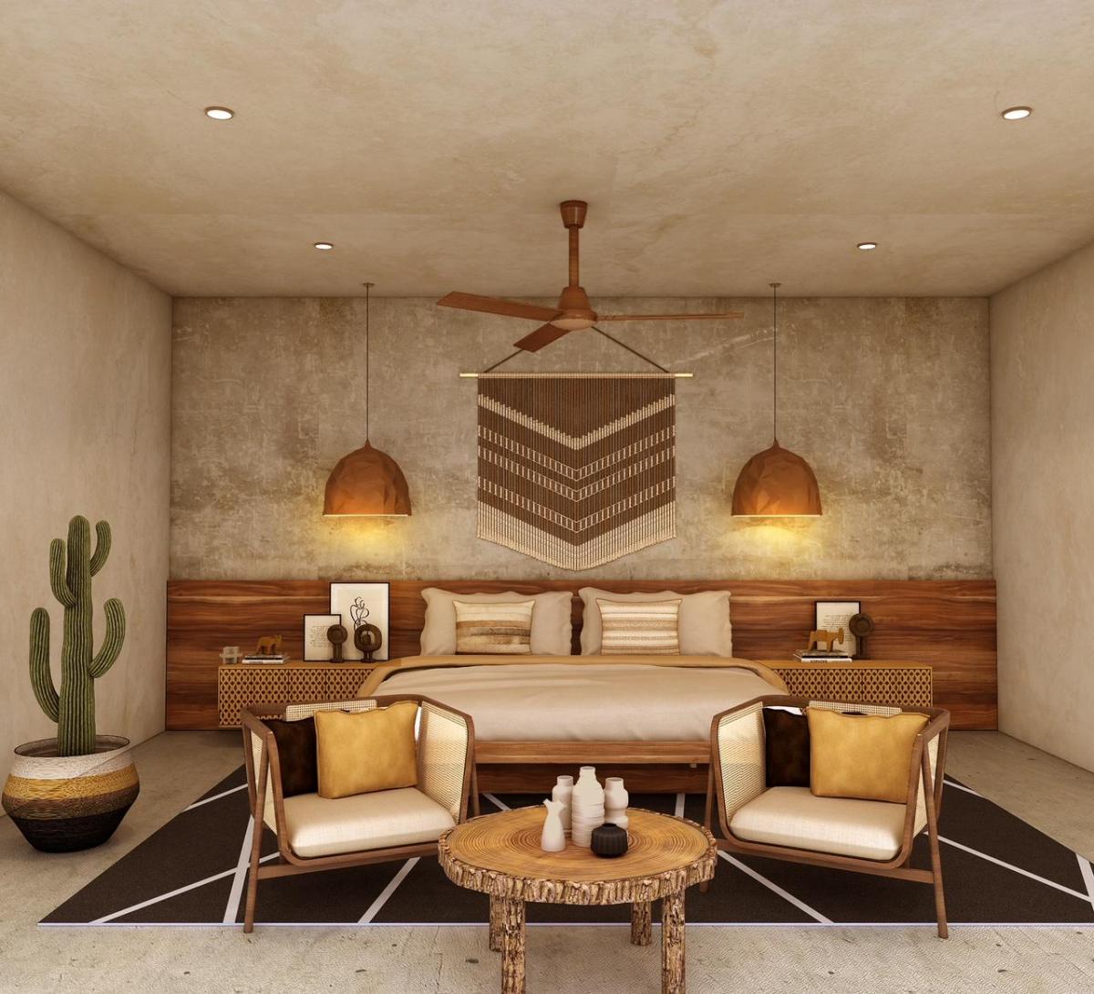 and the kitchen. The bohemian style decor is bohemian style is unique and elegant, with local materials, such as chukum and tzalam woods, add a bohemian charm to the modern design.