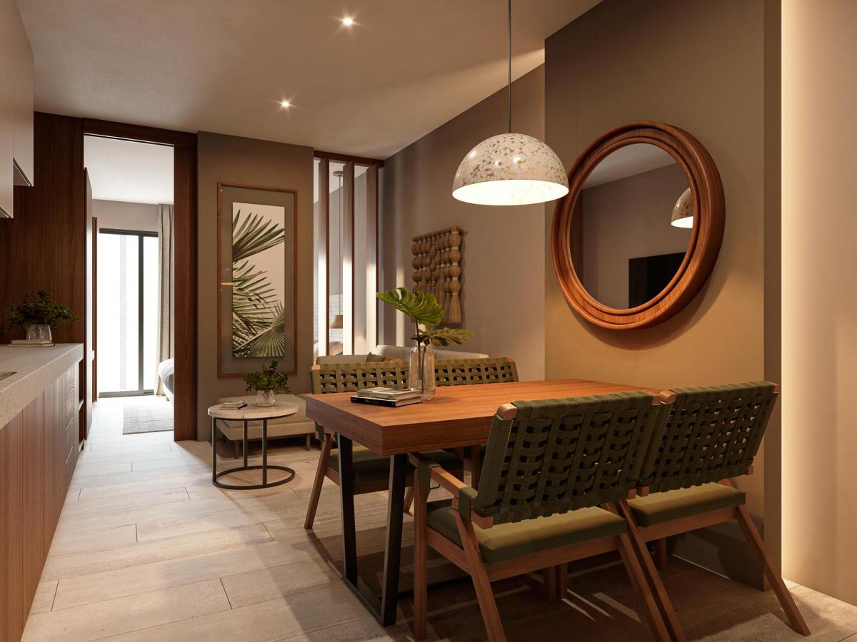 Imagine having your own refuge in the heart of Tulum, where every detail is designed to maximize comfort and investment potential. This cozy apartment offers 68.71 square meters (740 square feet) of intelligently distributed space, featuring a spacious bedroom and a full bathroom. This conscious design creates an intimate environment that perfectly meets the needs of both residents and investors, offering the perfect balance between functionality and profitability potential in the most dynamic market of the Riviera Maya.The smart space distribution ensures that each area serves multiple functions without feeling congested. The bedroom offers a private retreat for rest, while the social area integrates fluidly to create a perfect environment for relaxation after a day at the beach. This apartment represents more than just real estate; it's a tangible opportunity to participate in the Tulum market with an accessible investment that has high return potential, ideal for those looking to enter the vacation rental sector or secure a second home in paradise.