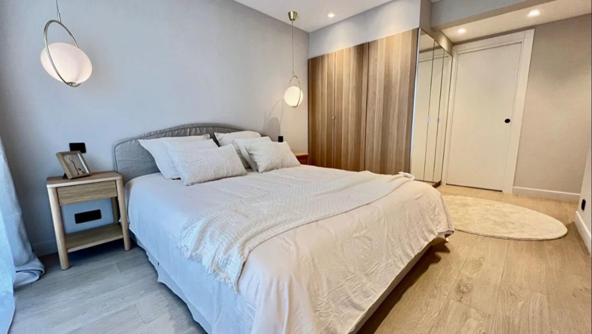 Die Wohnung besteht aus einem geraumigen Wohnzimmer von 47 m2 mit Sud-Ost-Ausrichtung und einer hochwertigen, voll ausgestatteten Kuche, die sich auf eine grosse Terrasse von 40 m2 ohne Gegenuber offnet. Zwei komfortable Schlafzimmer, darunter eine Master-Suite, zahlreiche eingebaute Schranke, ein Badezimmer mit begehbarer Dusche und WC sowie ein zweites, separates Badezimmer.