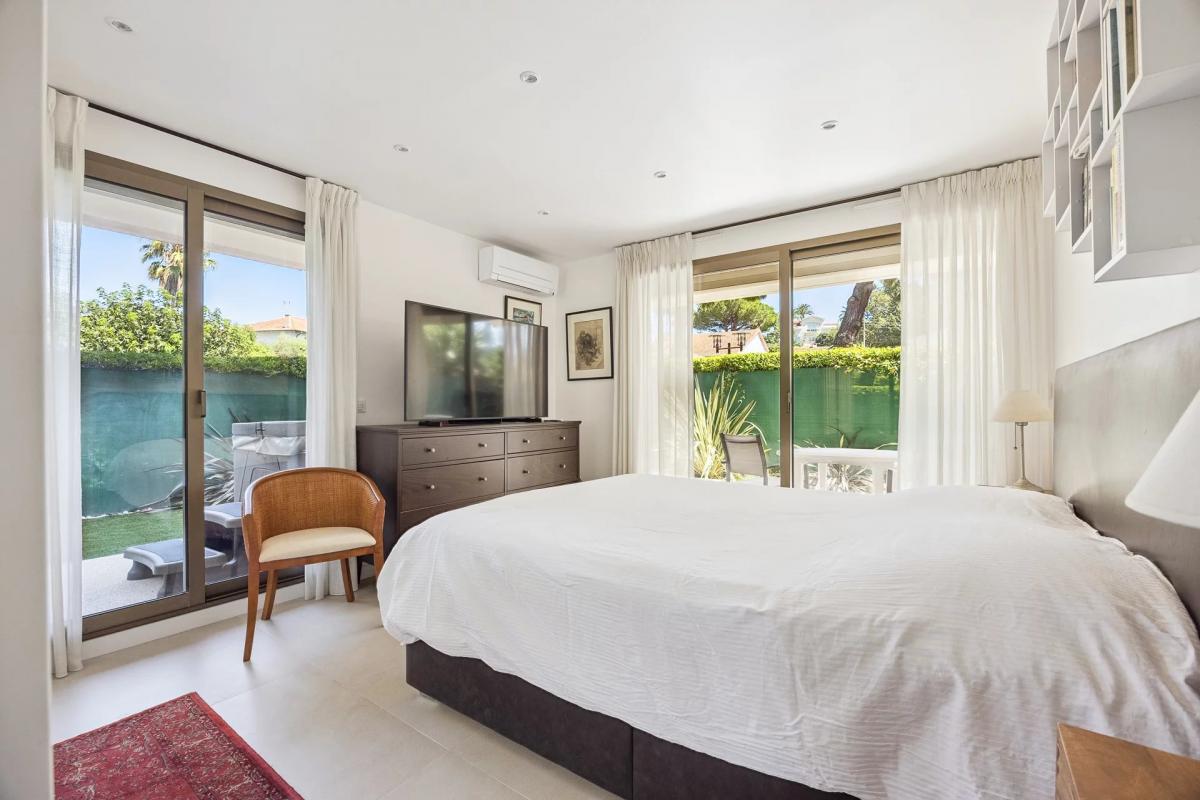 Located at the gateway to the prestigious Cap d'Antibes, in one of the most sought-after residences in the area, the Chateau de la Pinede, discover this magnificent ground-floor 4-room apartment, fully renovated with high-end materials