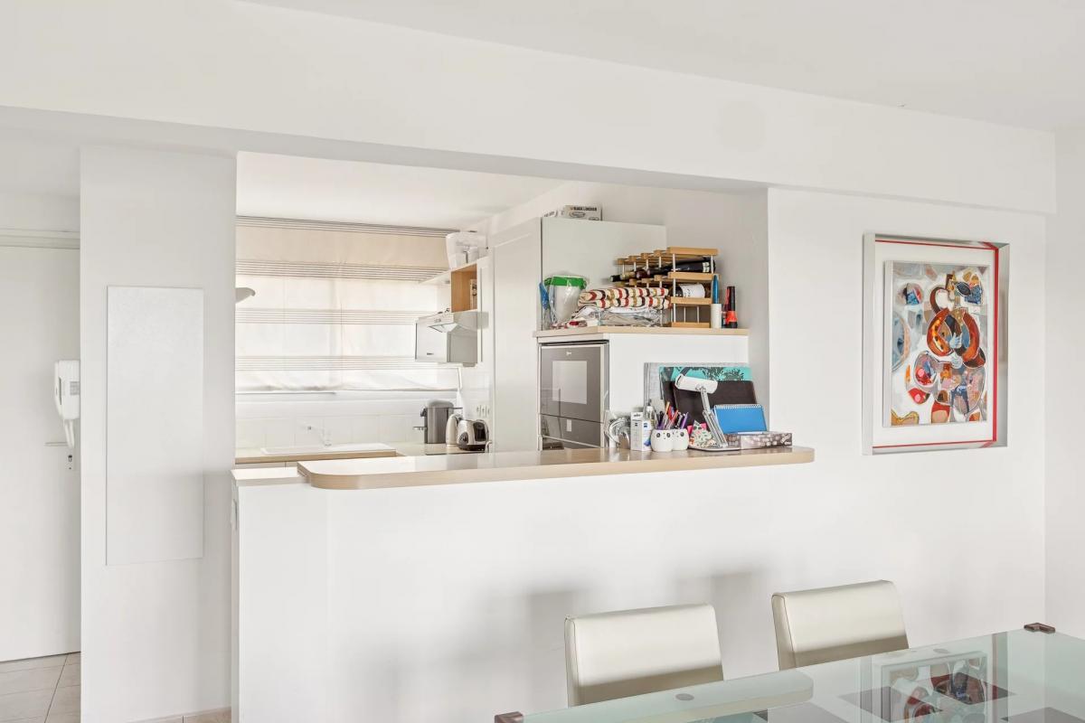 This bright, dual-aspect property with an ideal orientation features a pleasant living room opening onto a 12 m2 terrace with a lovely glimpse of the sea and complete privacy. The open, functional kitchen blends perfectly with the living space.
