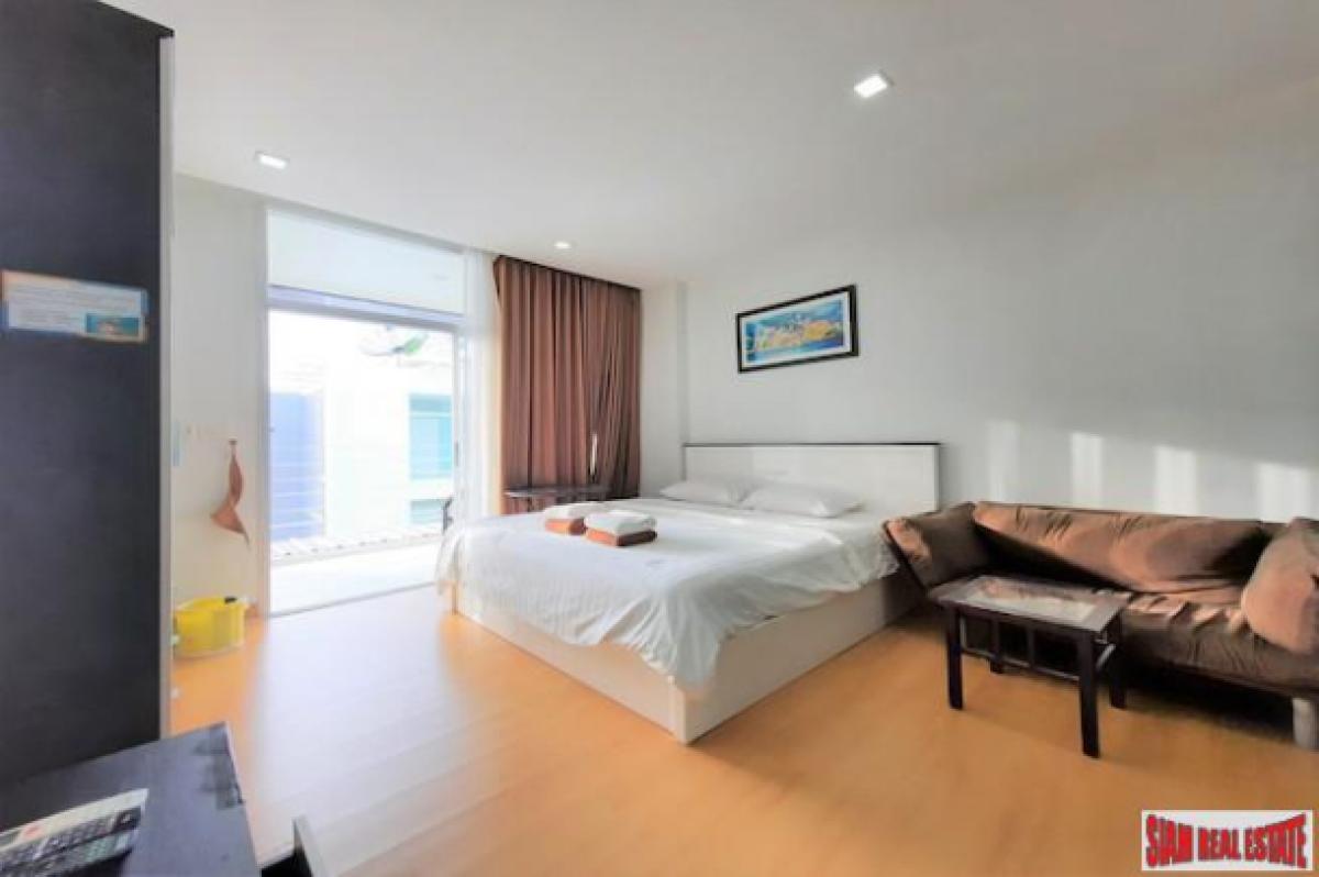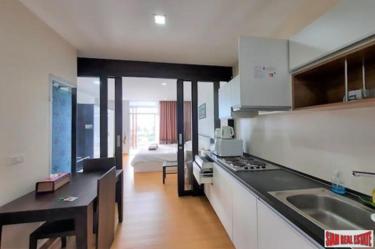 A very nice sea view condo for sale within walking distance to the beach where you can find restaurants for a sunset dinner. This unit is situated on the 5th floor with stunning views from the balcony. The floor plan consists of a kitchenette, bathroom connecting to the bedroom and balcony. Inside the kitchen is a sink, stovetop, hanging cabinets, refrigerator and microwave.The bedroom has a large bed, wardrobe and TV shelf, while the bathroom separates the shower area with sliding glass panes. Just off the bedroom is a balcony with a set of sitting chairs and table for relaxing and taking in the views.