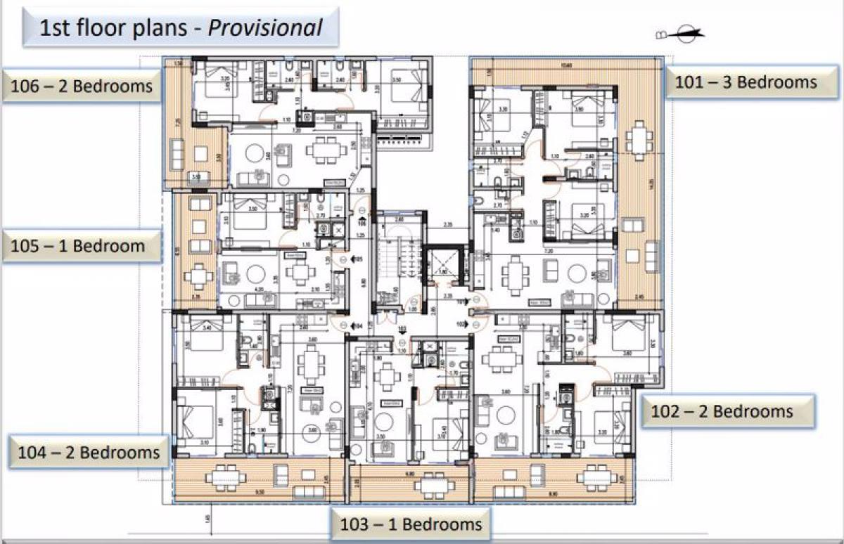 These apartments are located in the Aradippou area of Larnaca. Nearby is easy access to all local amenities and to the Nicosia & Limassol highways. The project consists of a total of 12 units of 1, 2 & 3 Bedroom apartments. All apartments have spacious verandas and large windows, private parking spots & storage rooms, the penthouse apartments come with the addition of roof terraces. There is also a spacious 2 bedroom ground floor apartment with a large garden area.