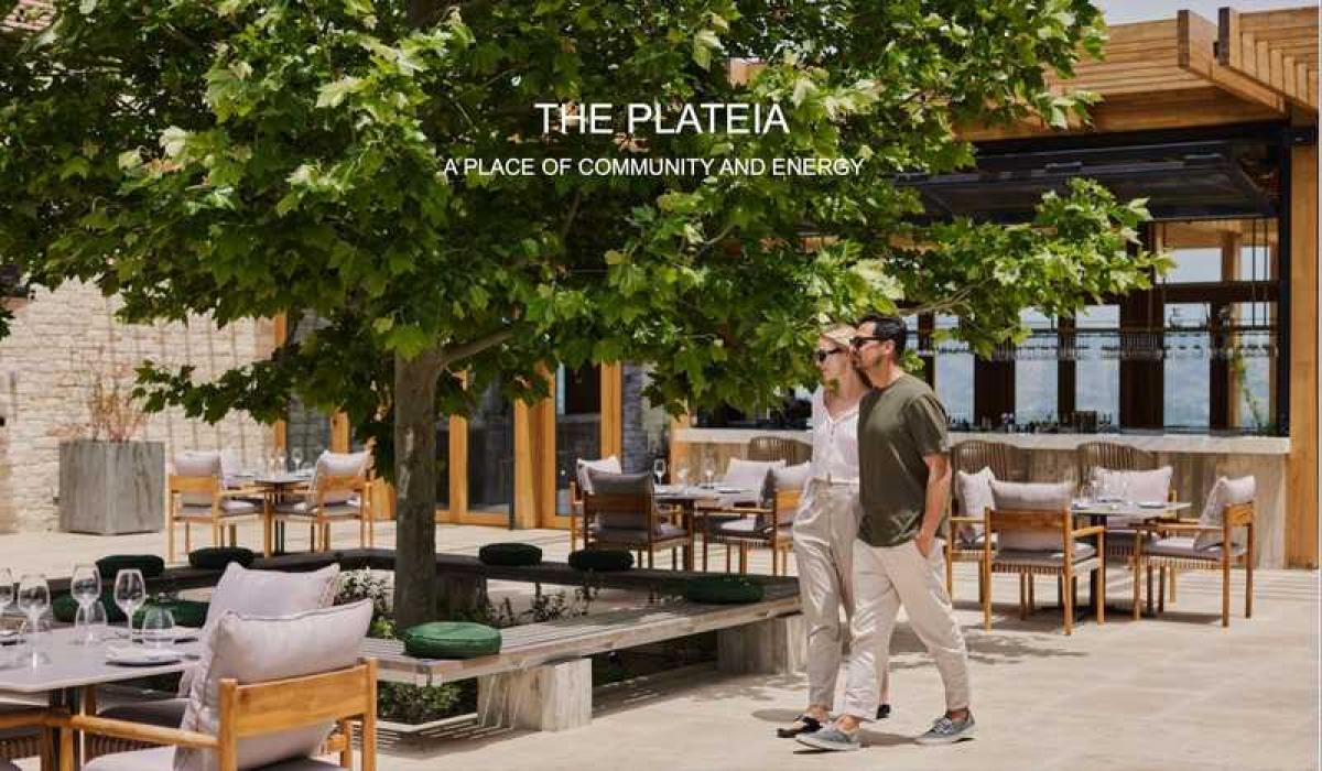 The Plateia, is a central lively square with lounge restaurant, souvlaki grill, gelato, bar (now open), a home-concept store, a wine cava, art gallery and other boutiques selling curated and essential items.